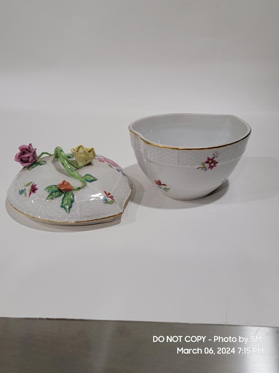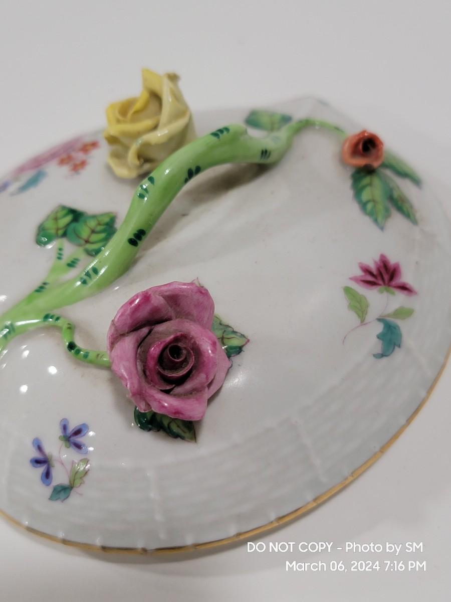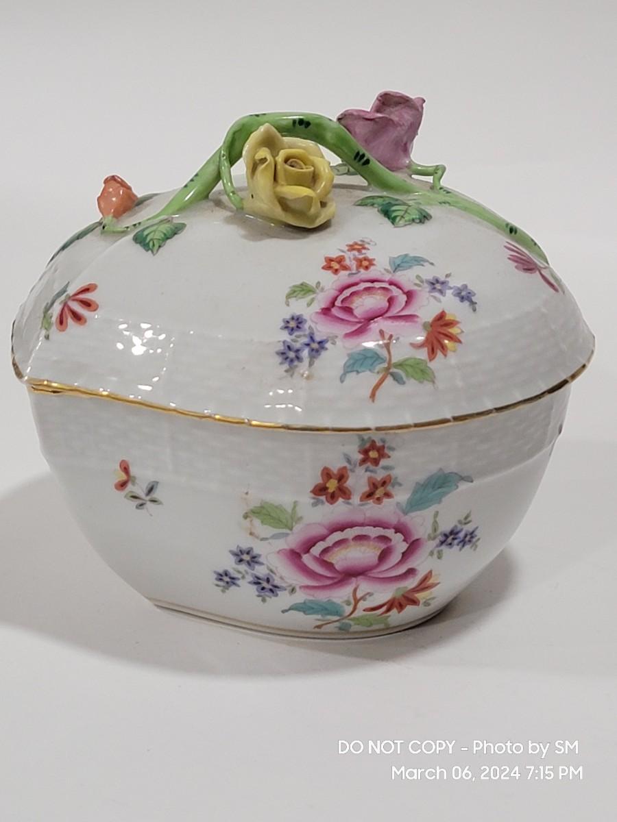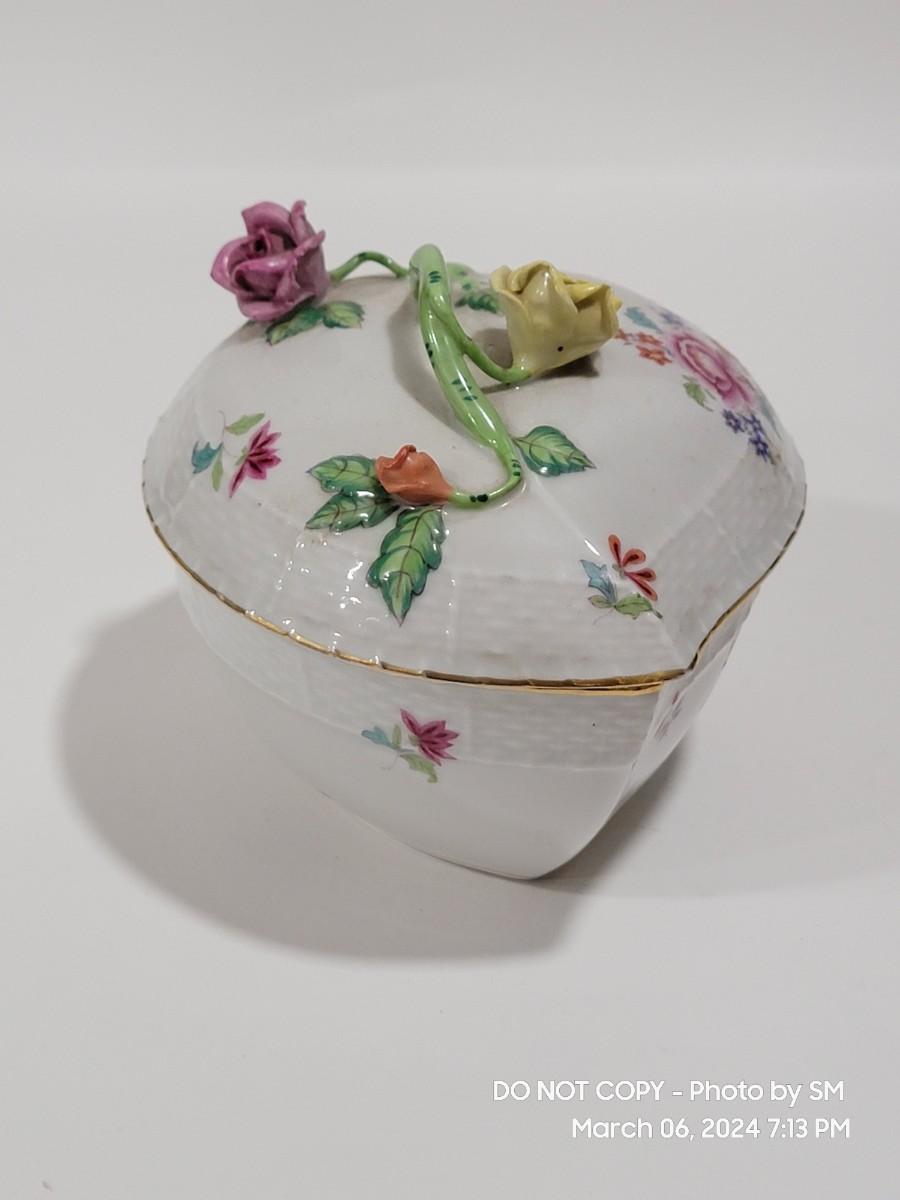 HEREND antique heart shaped covered dish