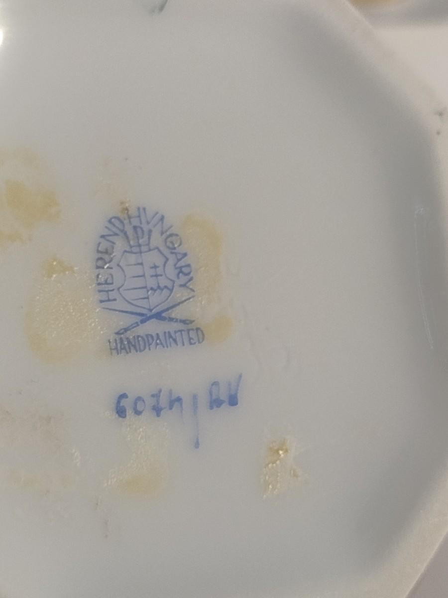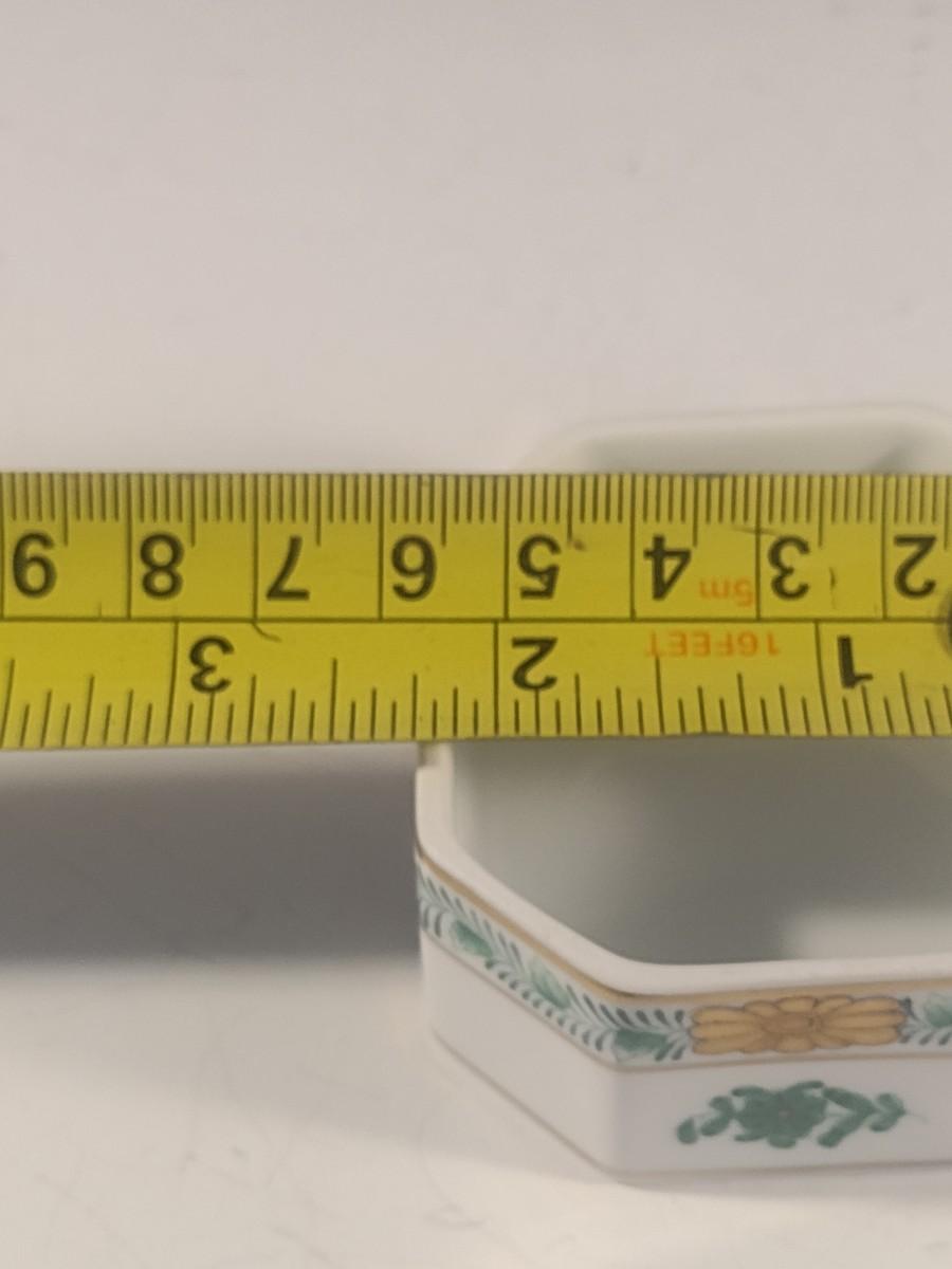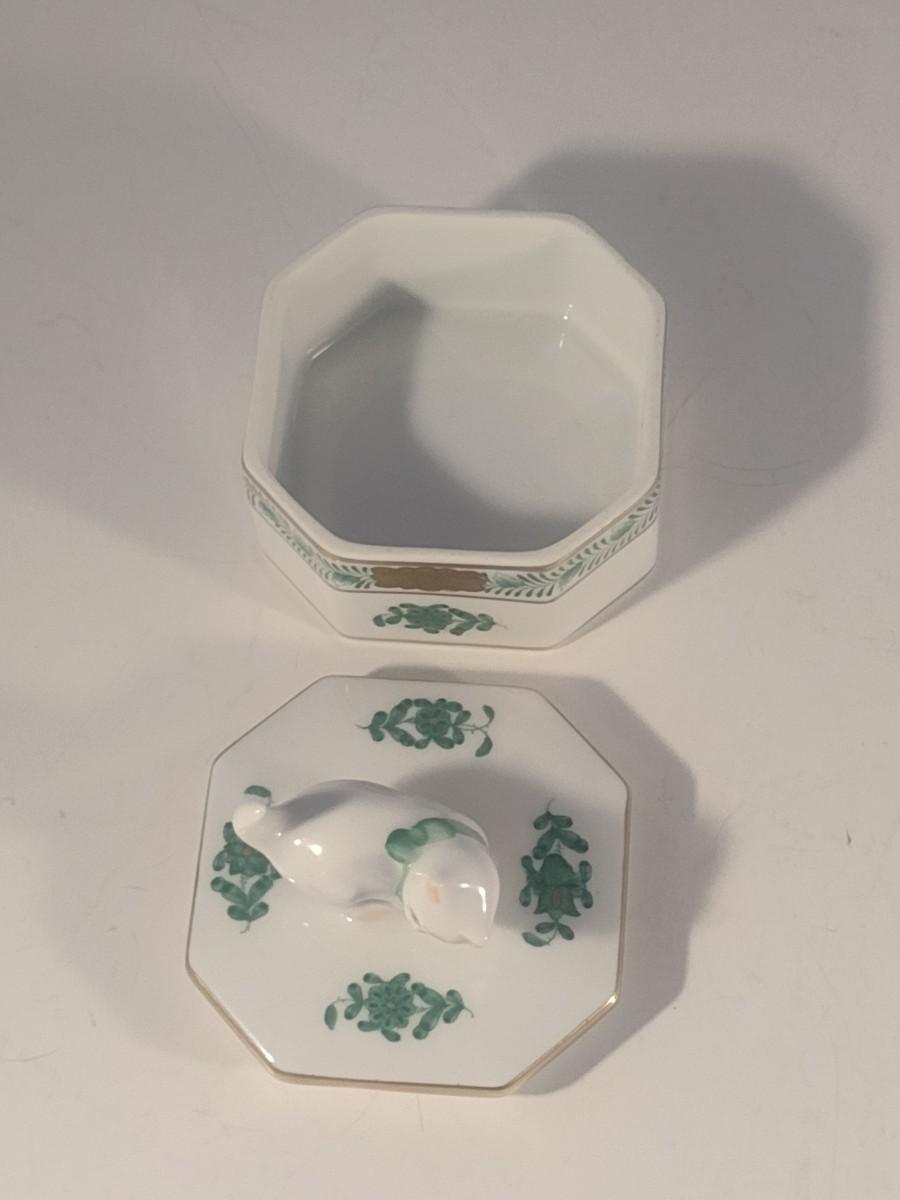 Herend Ceramic Lidded Hexagonal Trinket Box with Kitten Finial