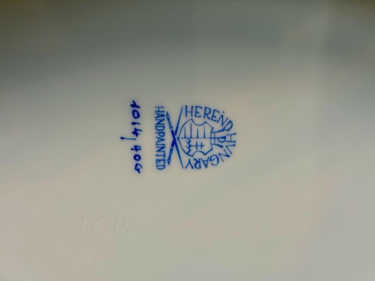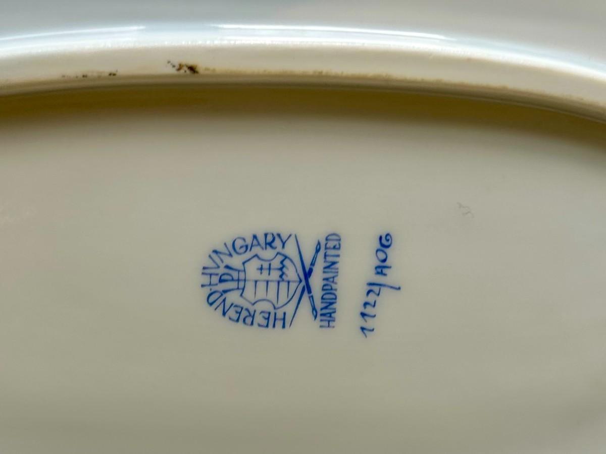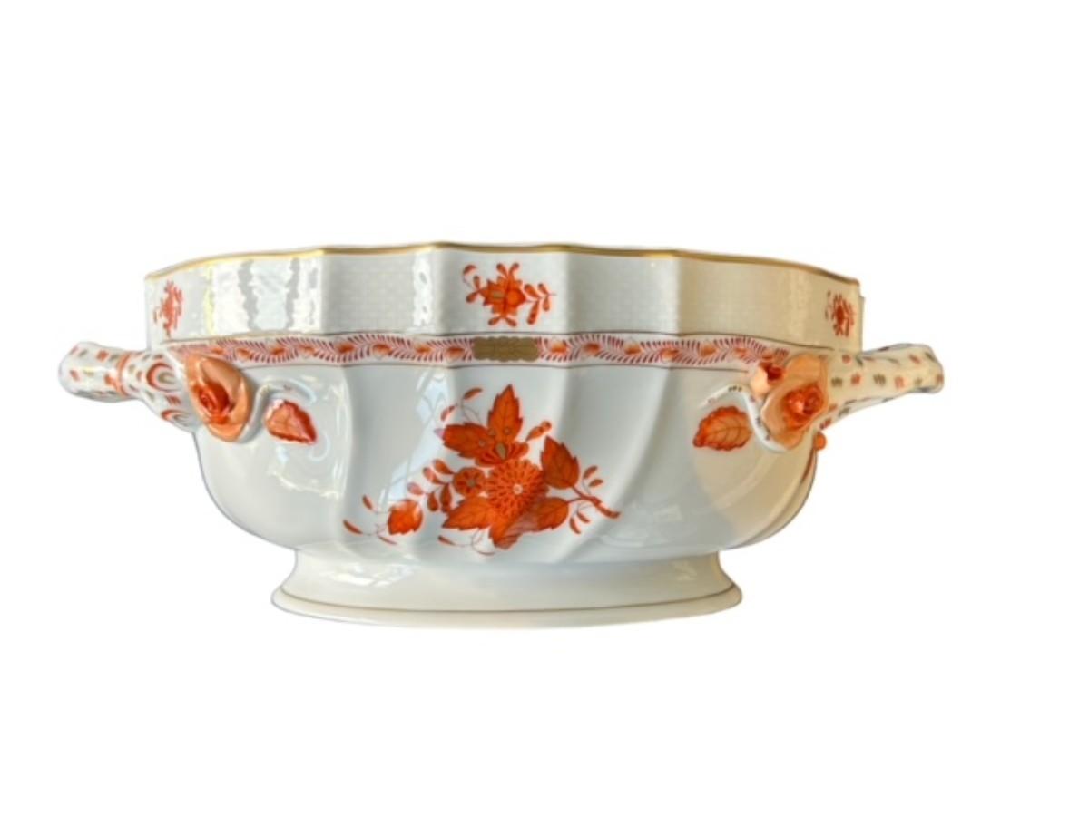 Beautiful handcrafted and hand-painted Herand tureen and platter. Pattern: 'Chinese Bouquet Rust’ Mid-20th century, stamped "Herend Hungary Handpainted' 24k Gold accent and Rocaille edge. Lovely estate condition. 'Chinese Bouquet' is one of the lovelist and most sought after of all Herend patterns. Excellent condition. No chips. No discoloration.