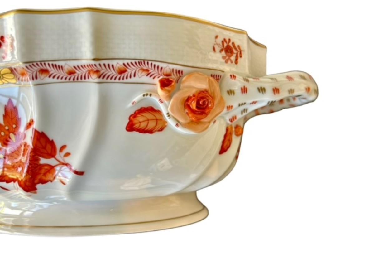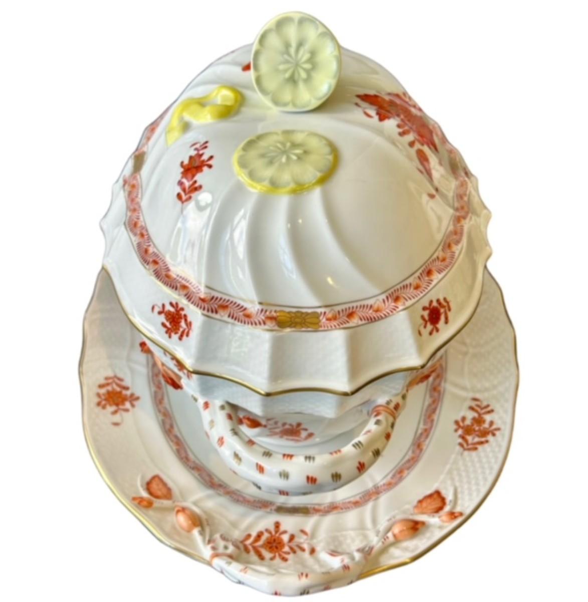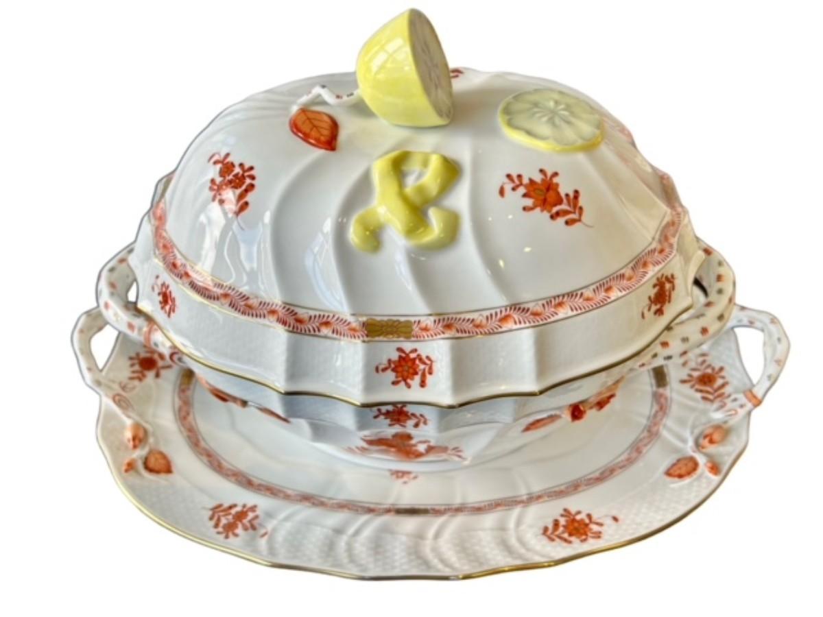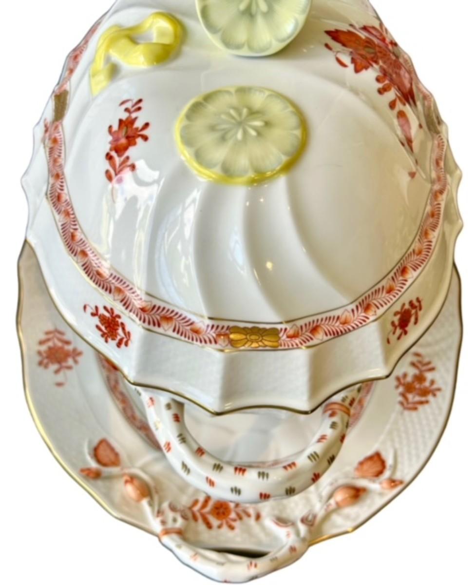 Herend 'Chinese Bouquet Rust’ Porcelain Tureen with Lemon Top and Oval Platter
