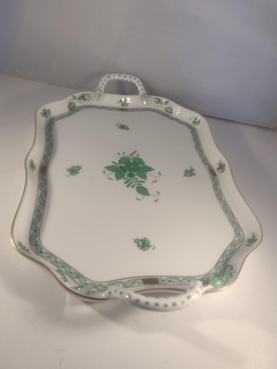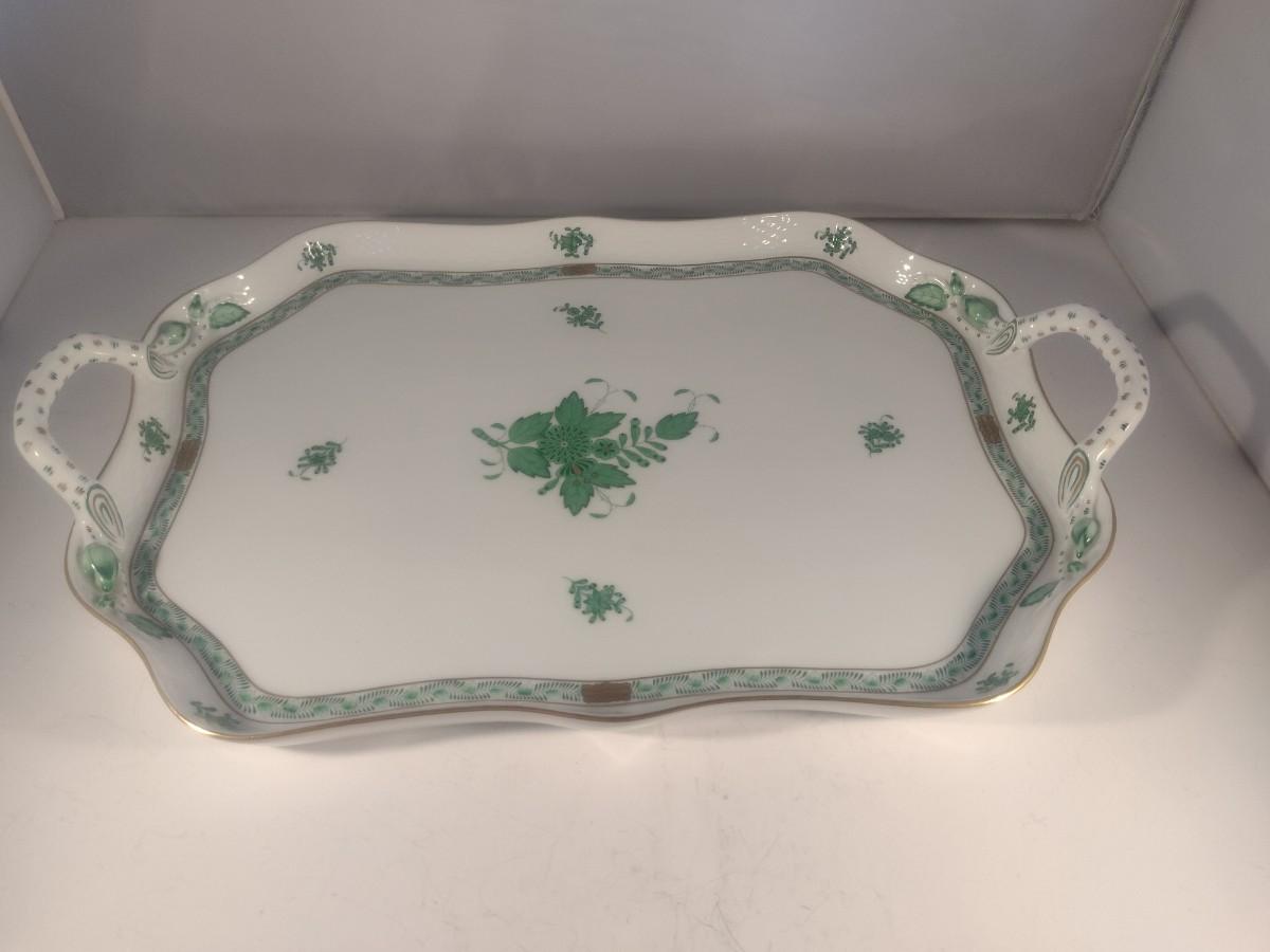 Herend Hand-Painted Porcelain Green Chinese Bouquet Tea Serving Tray