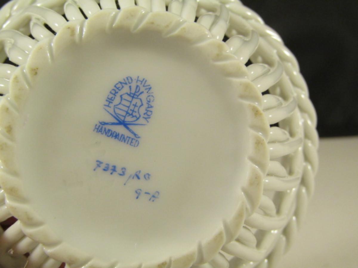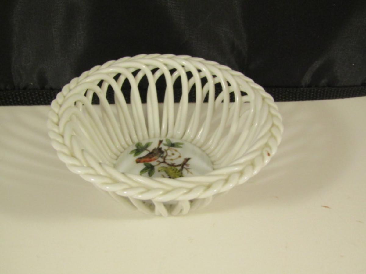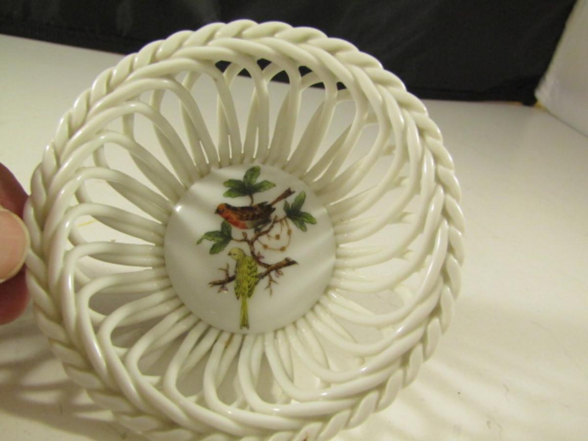 Herend Rothschild Birds Woven Porcelain Basket- Approx 3 3/4" in Diameter