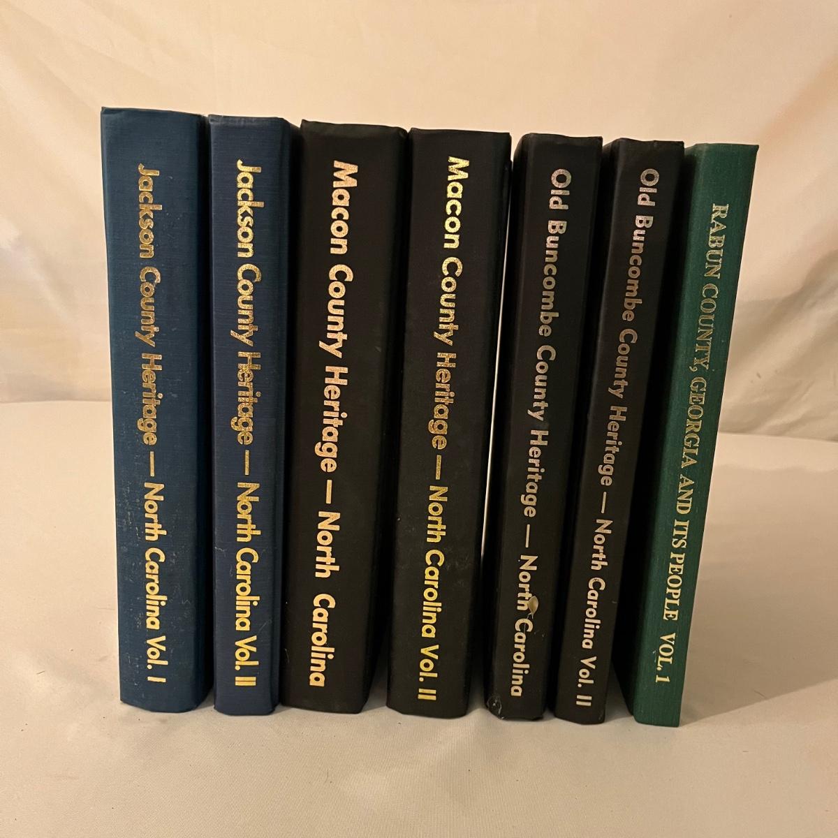 Lot includes two volumes from Old Buncombe County, two volumes from Macon County, two volumes from Jackson County and one from Rabin County. Books measure 9.5” x 12”.