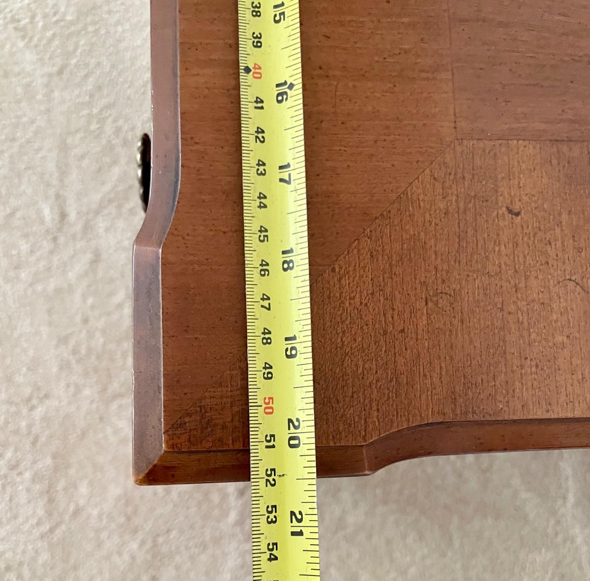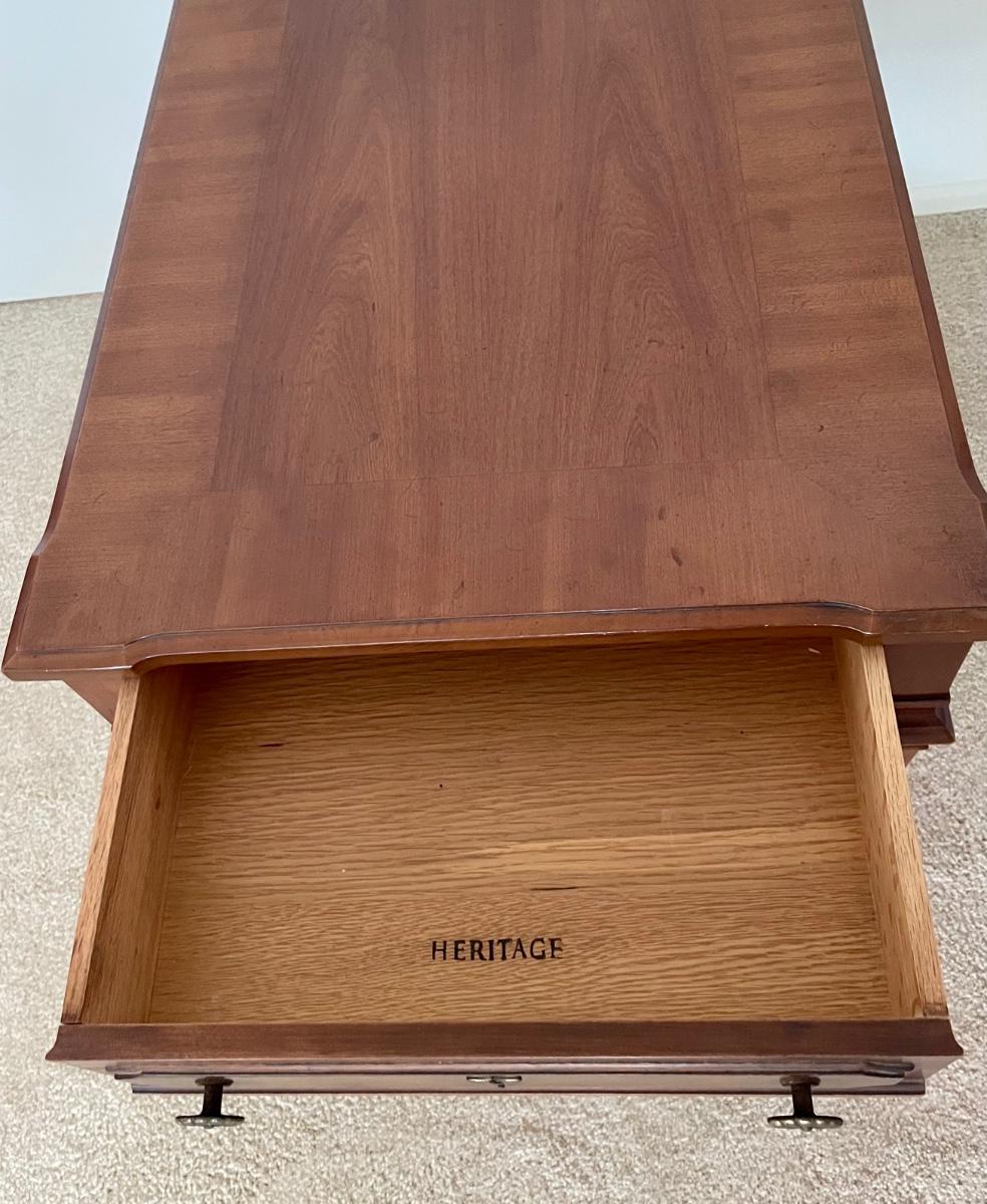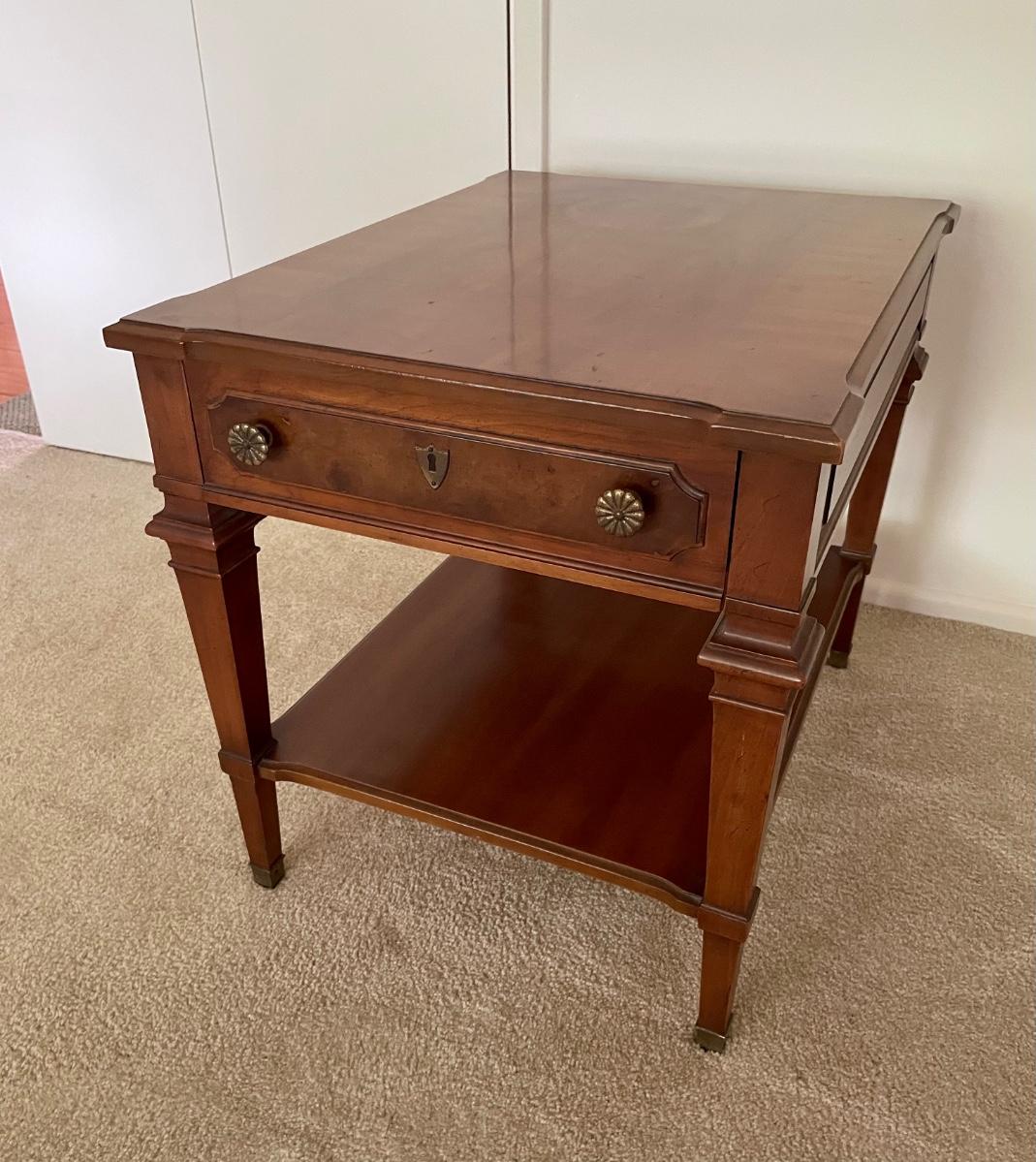 End table by Heritage, has on full-length drawer and a shelf at the bottom. Dimensions as noted in photos. *PICK UP IN ARCADIA SATURDAY MARCH 25TH BETWEEN 9am & 11am*