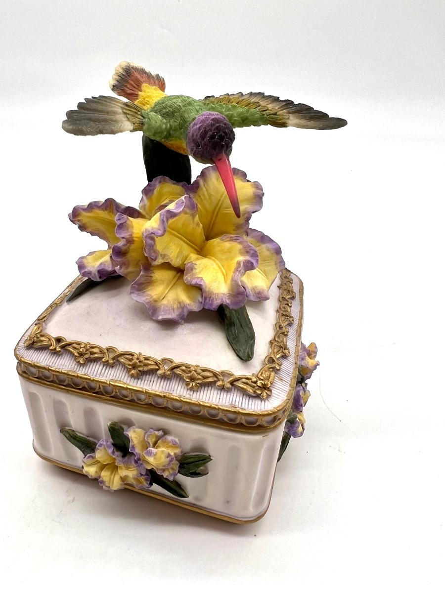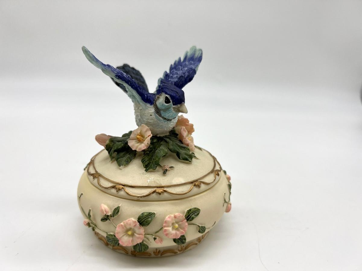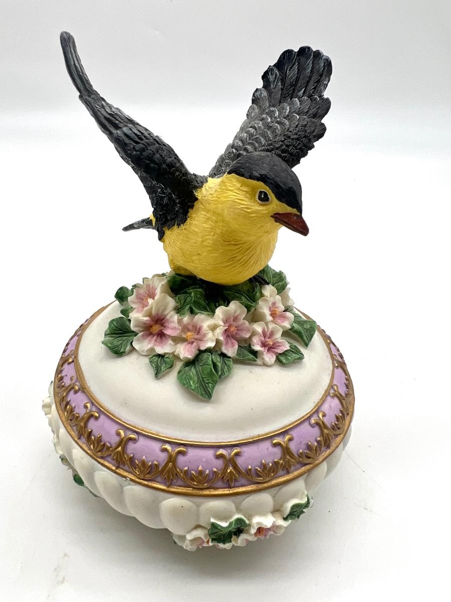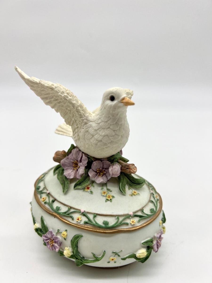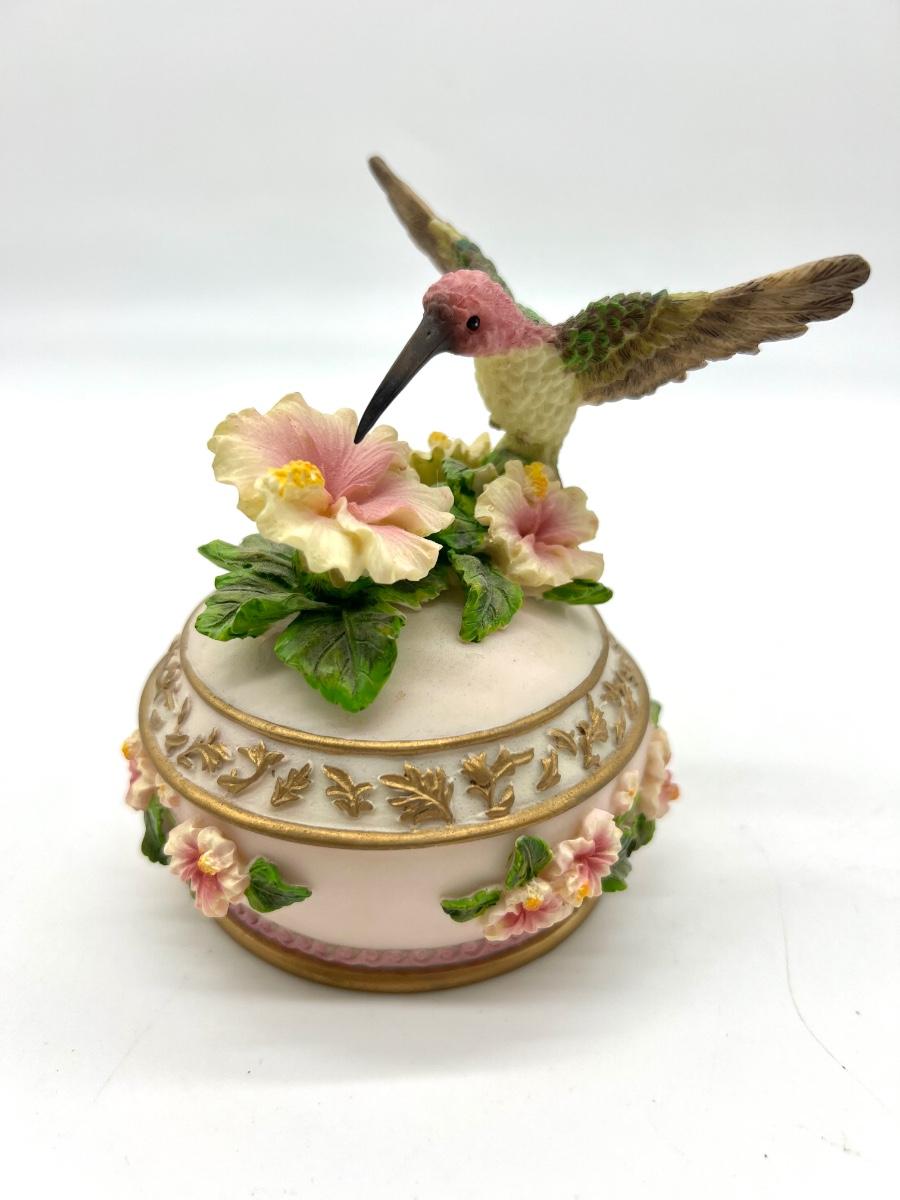 7 HERITAGE HOUSE musical boxes that open for those special trinkets. All music boxes work. Each measures approximately 5 inches tall.