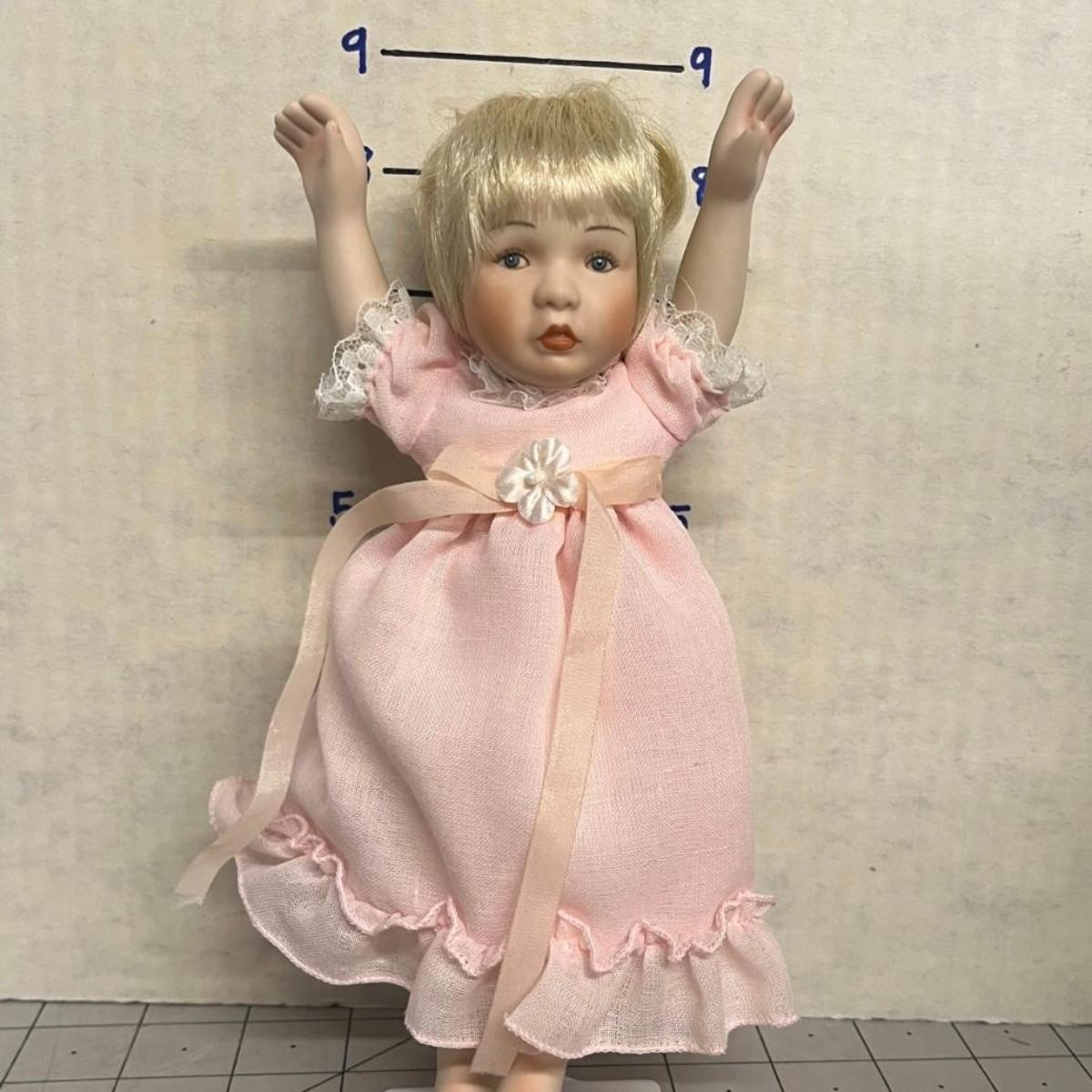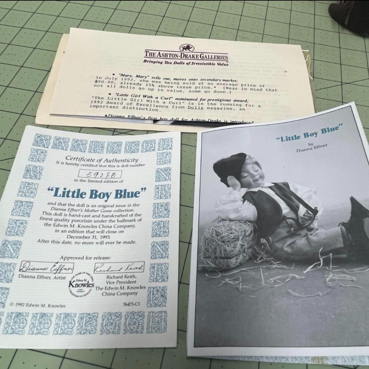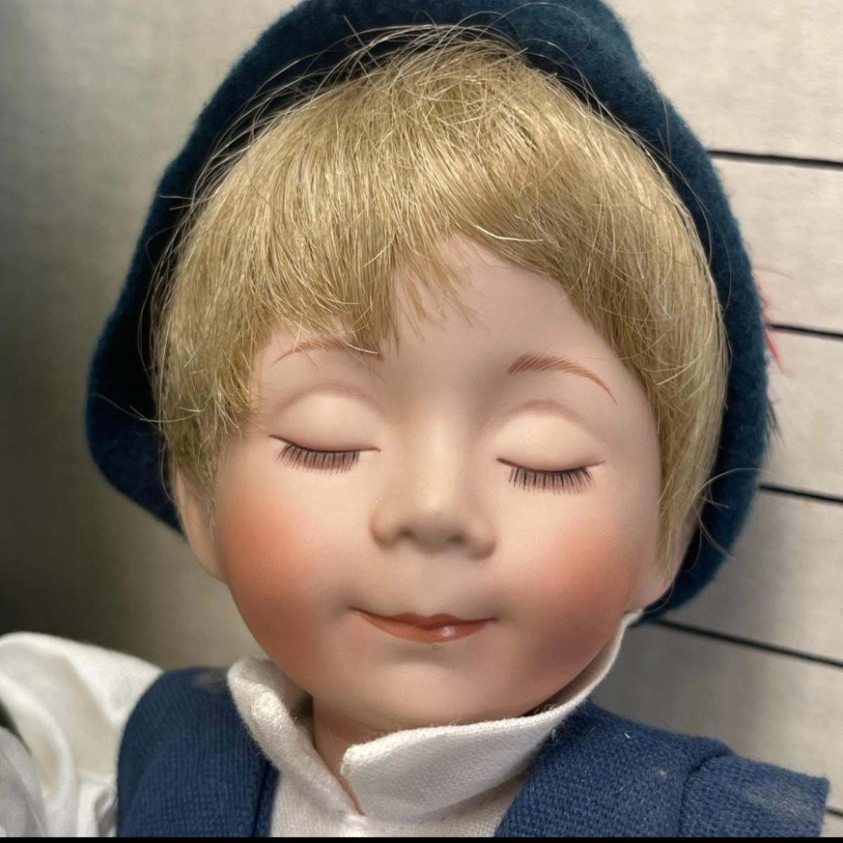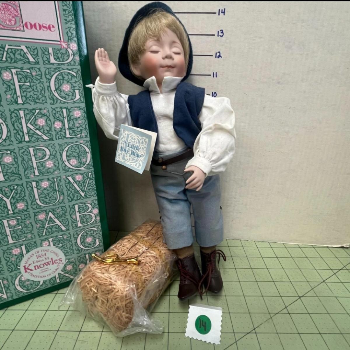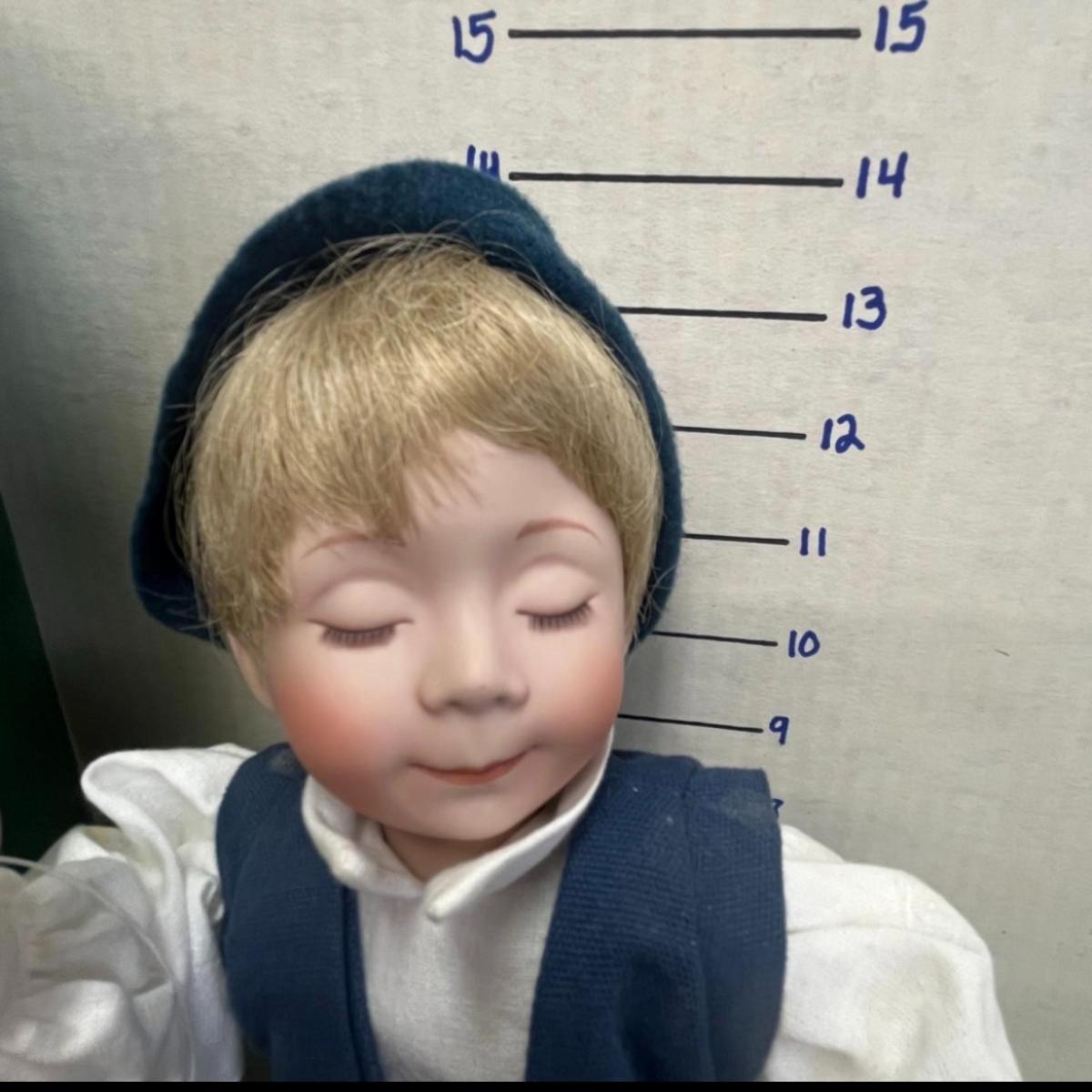 Lady & Baby Size - 18", 8" & Boy Size - 14" Includes straw bedding, lace dress, vest outfit, boxed presentation.