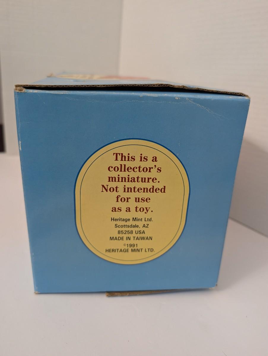 Vintage Heritage Mint Ltd doll collector’s red wagon, model D-77, from the Doll Furniture & Accessories series. Comes in the original blue box with charming retro artwork. A delightful miniature collectible perfect for dollhouse displays or vintage toy collections.