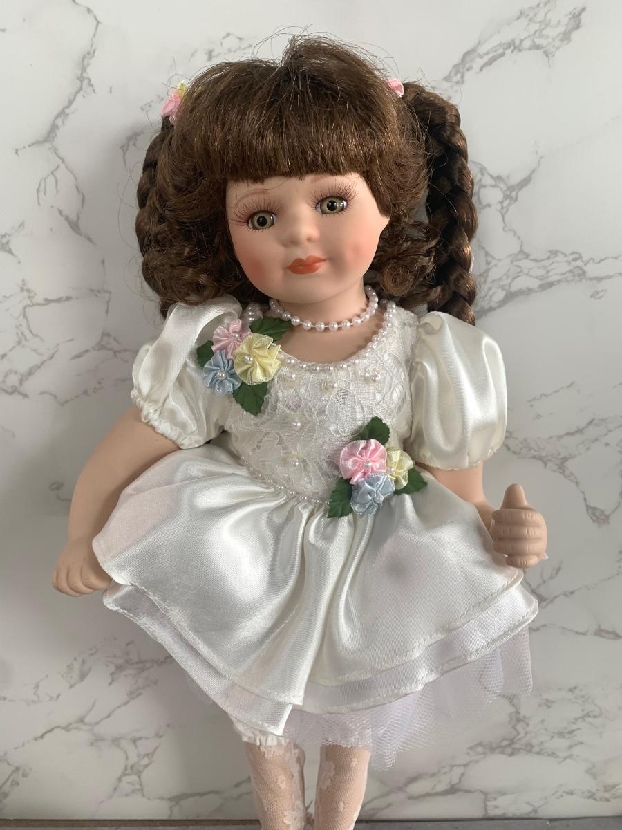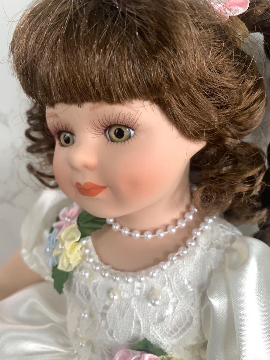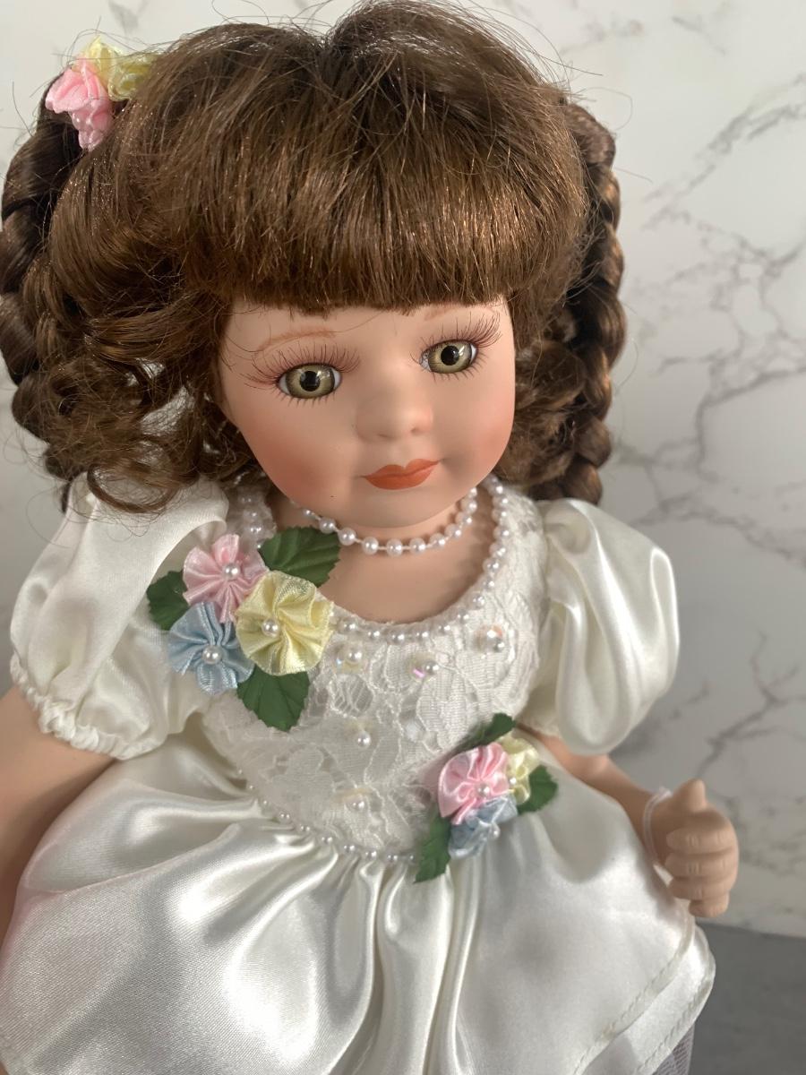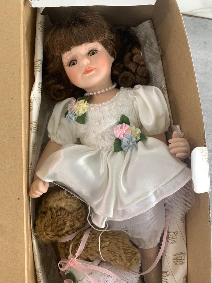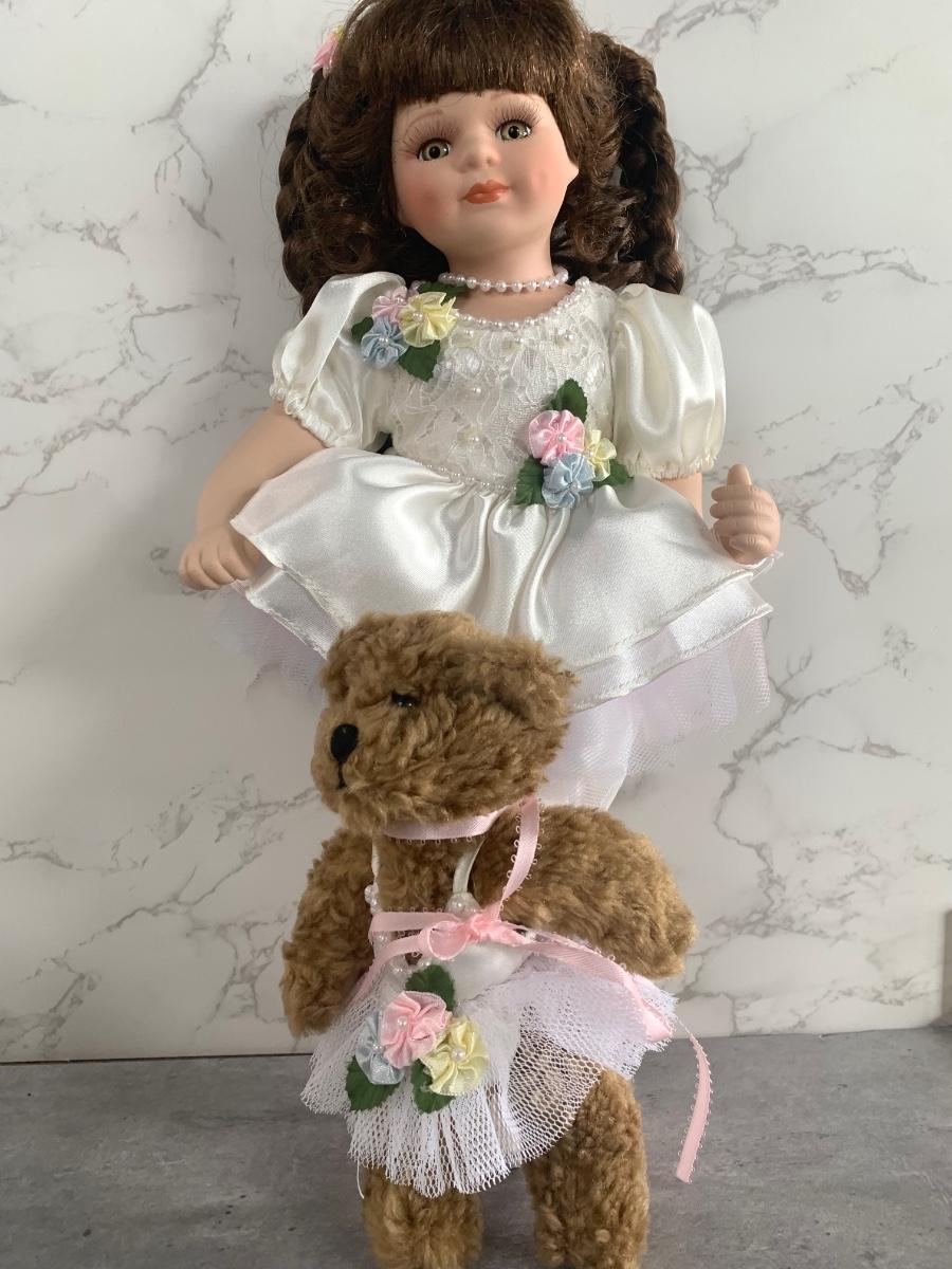 Adaptable porcelain doll with her teddy
