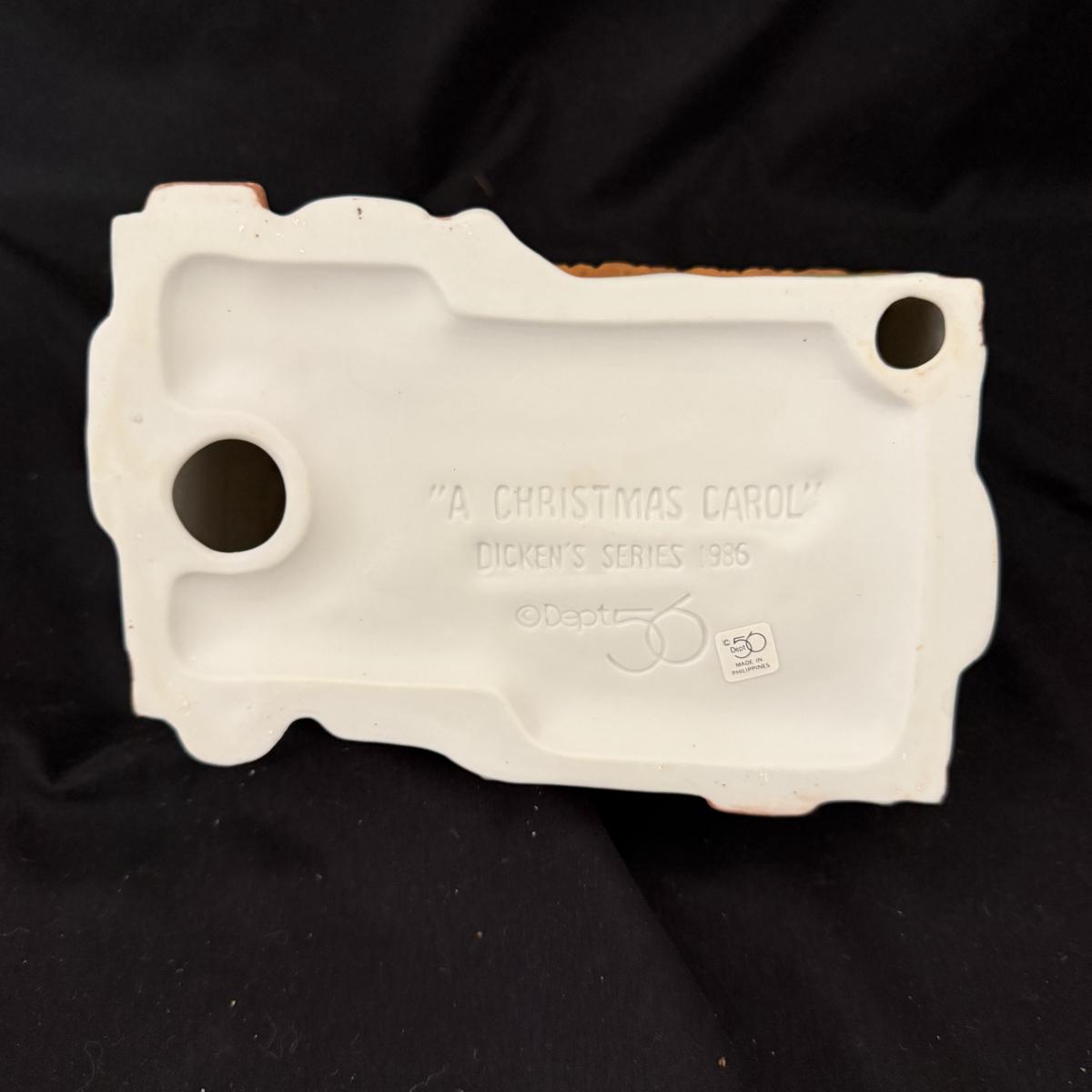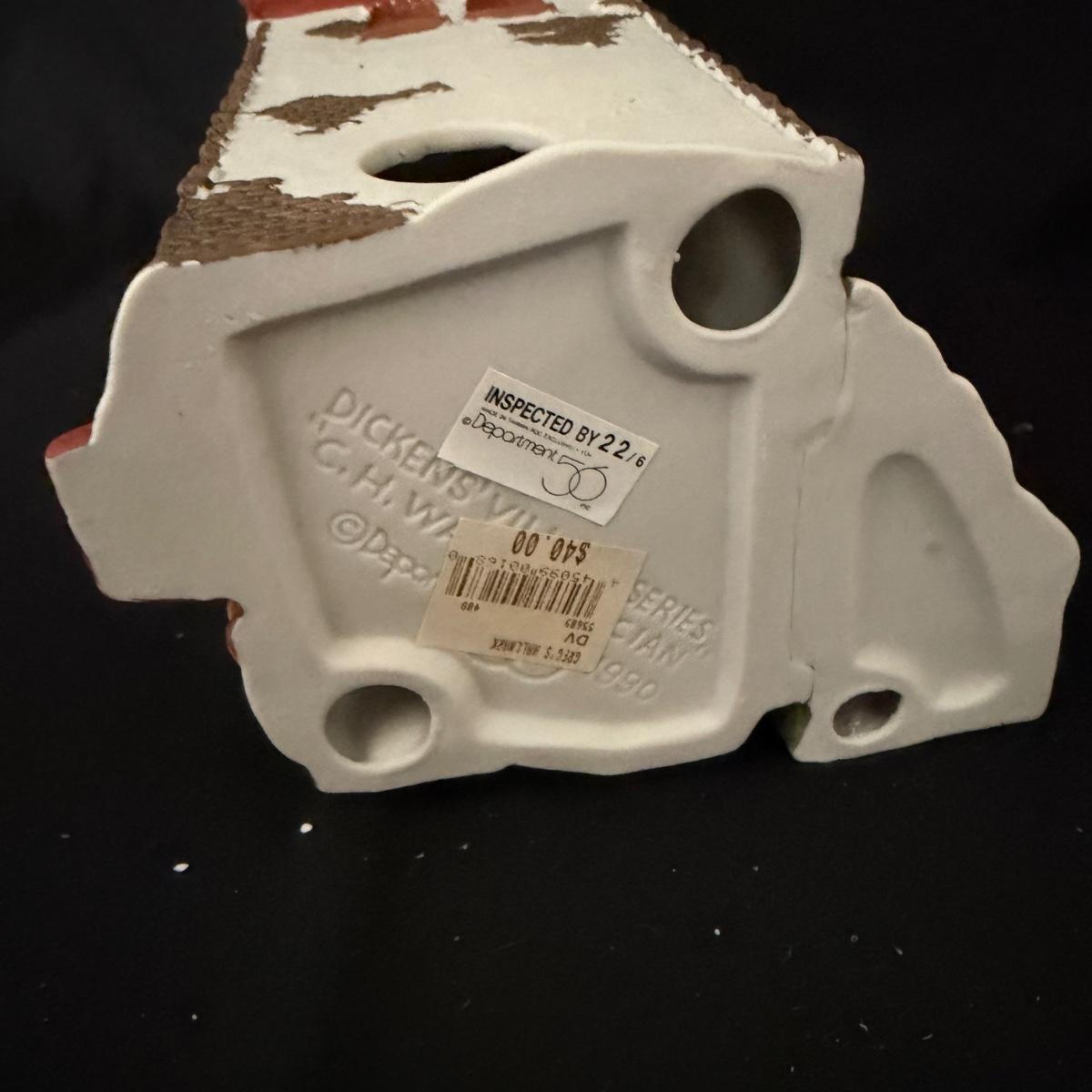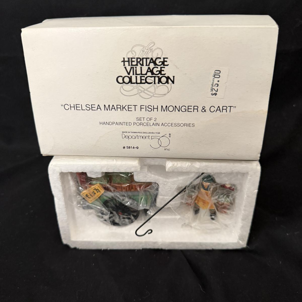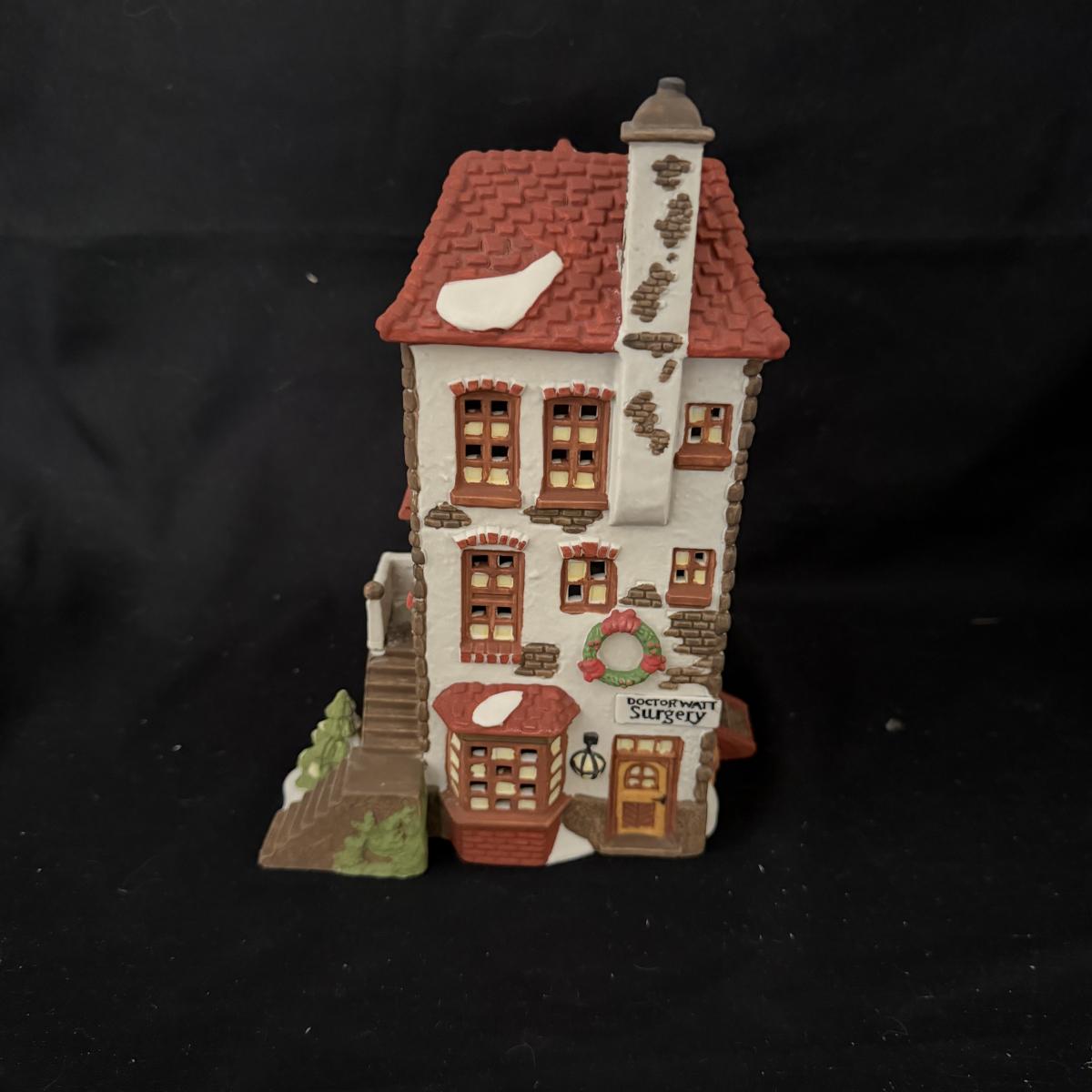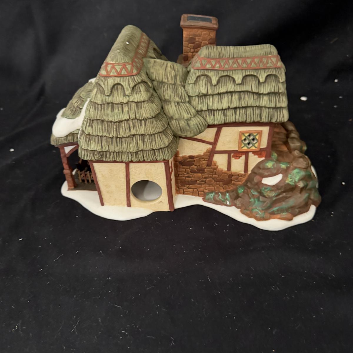 Lot contains seven boxes of Heritage Village collection. Includes four from the Dickens Village series and three boxes with accessories. Largest piece measures 10” x 6@ x 6”H. None of the lights powered on when plugged and appear to need new bulbs.