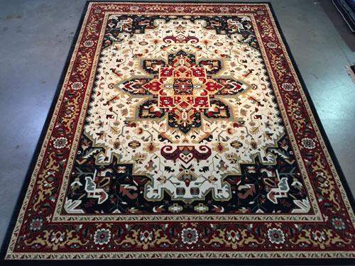 7 Feet 10 Inches X 10 Feet 10 Inches Reproduction of Classic Persian Medallion Rug in up to date Designer Colors Premium Quality Rug, in , Ivory , Navy Blue ,Grey and Multi Accent Colors, made of Durable and easy to care, Polypropylene Pile Power Loomed in Turkey.