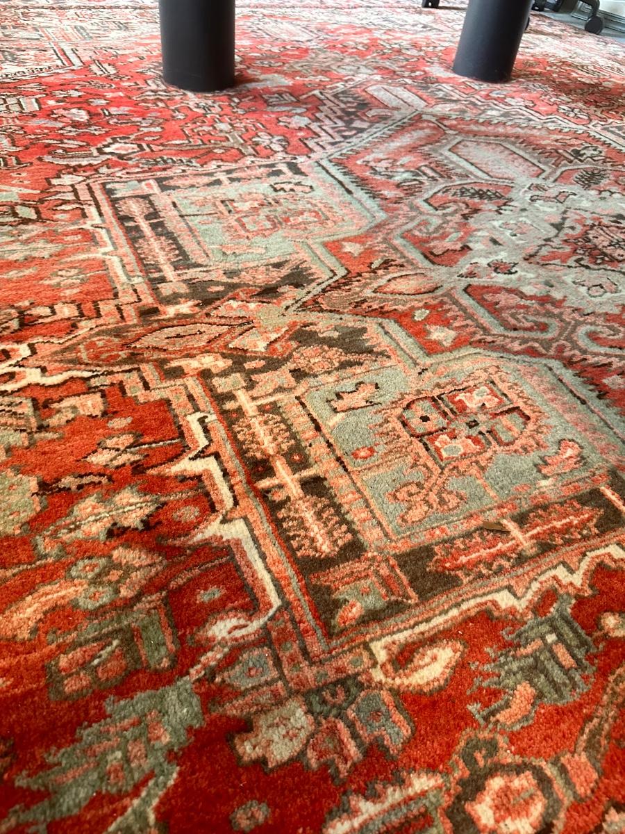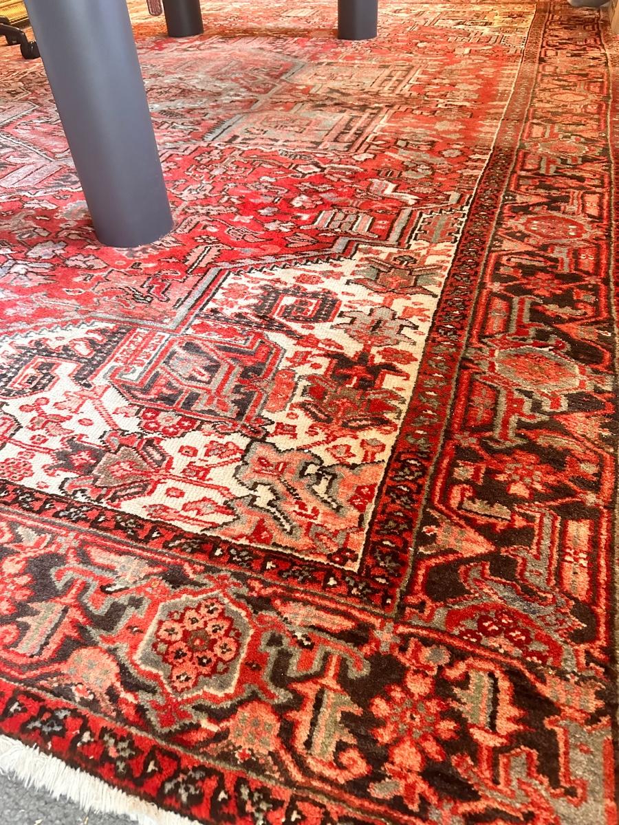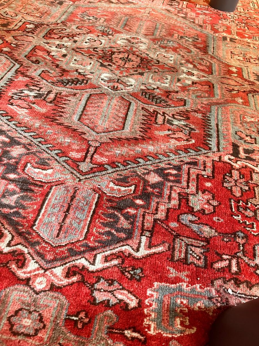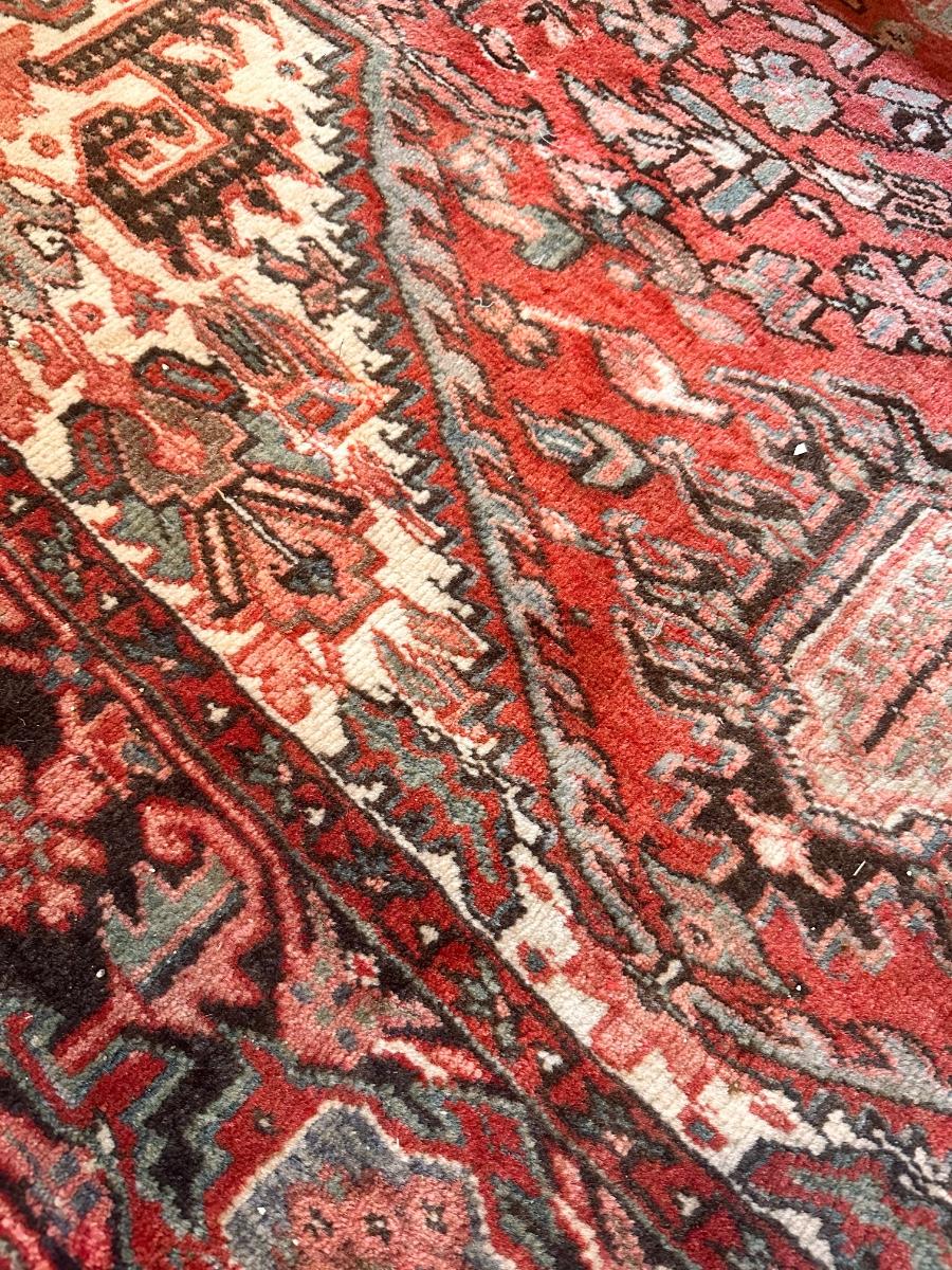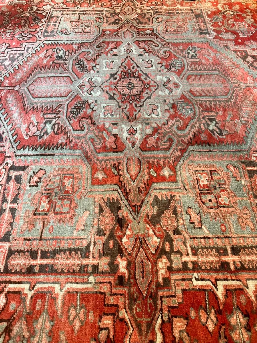 Heriz Persian Rug Iran, Dominant Central Geometric Medallion with Rosey Brown Field, Wool, Cotton Weft, 8ft7"x11ft4", In good condition