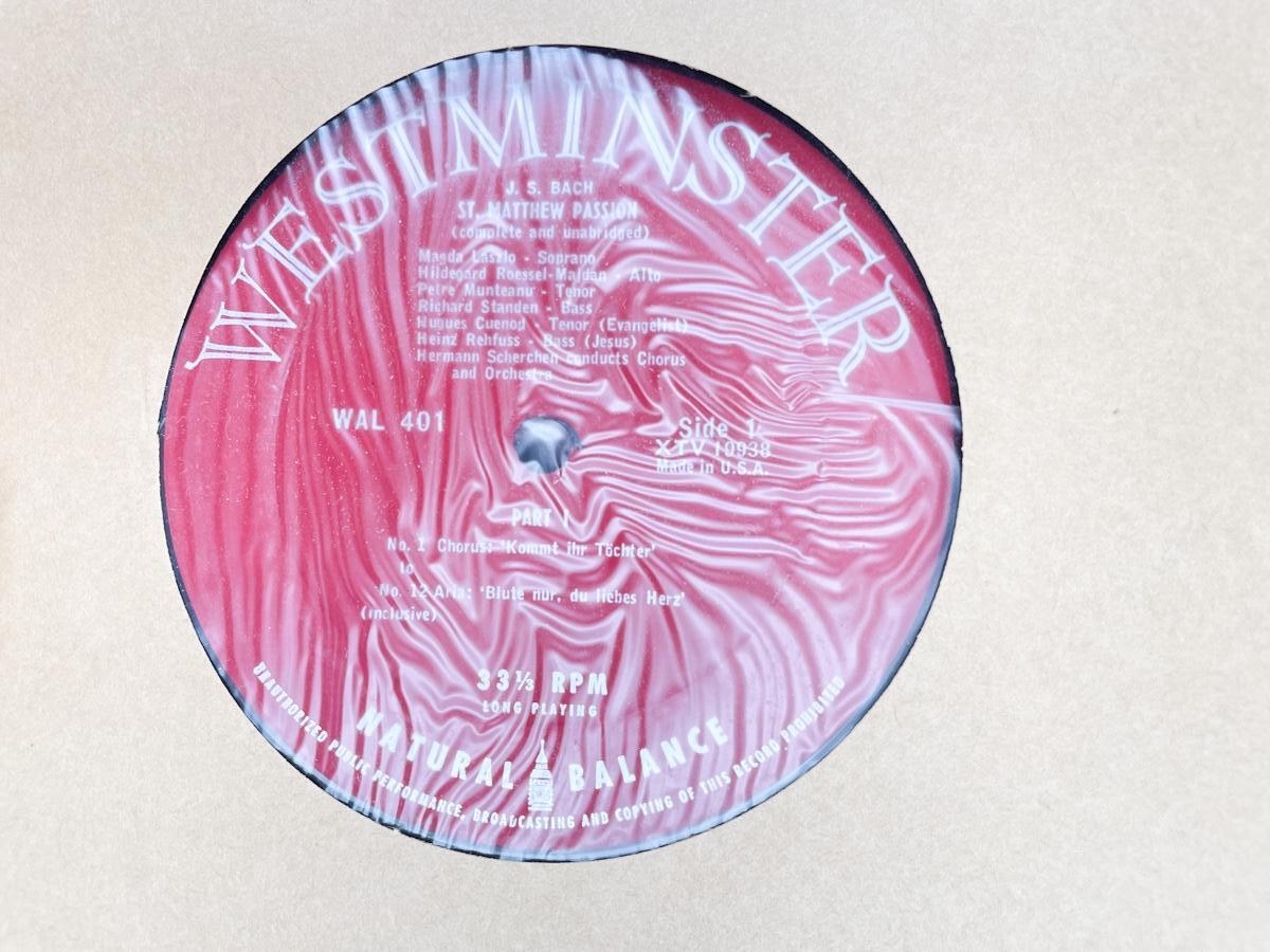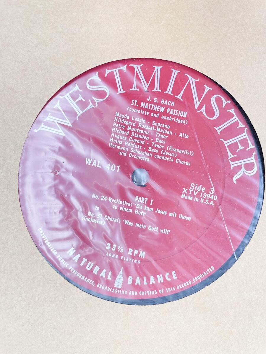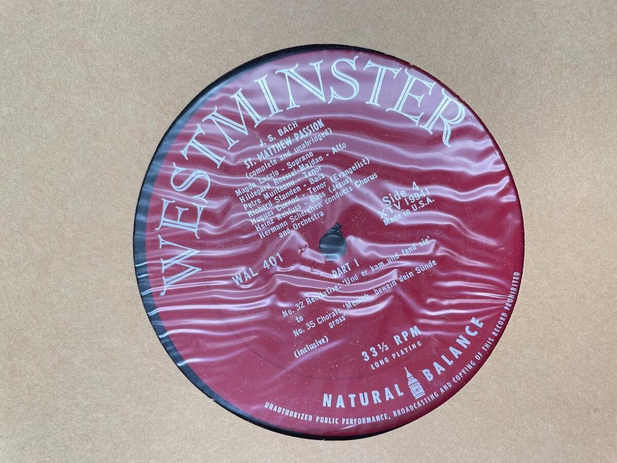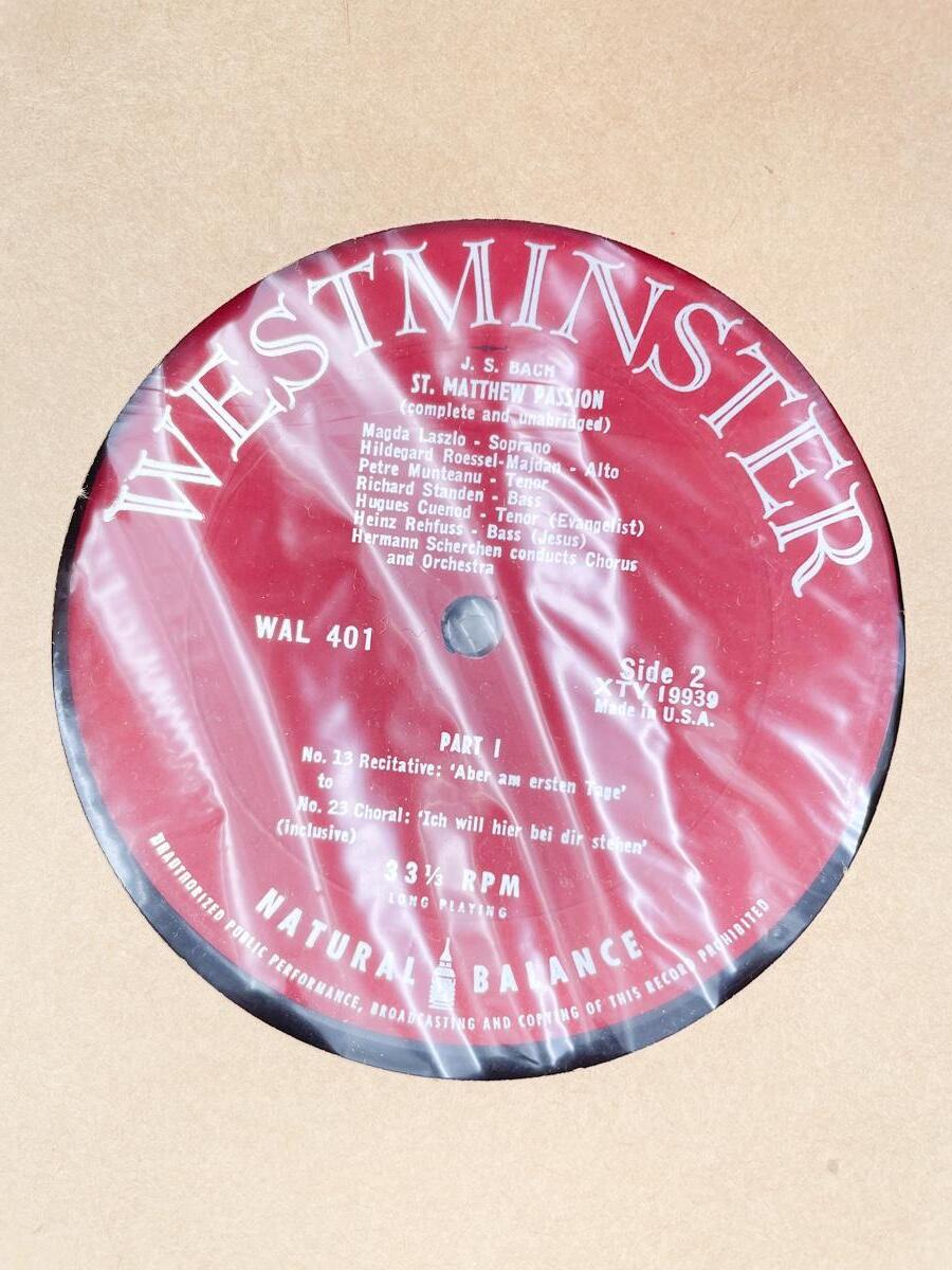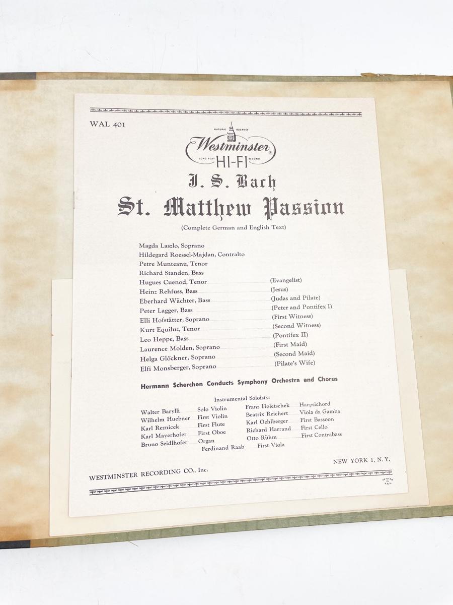 HERMAN SCHERCHEN “SAINT MATTHEW PASSION: JOHANN SEBASTIAN BACH” WAL 401 VINYL RECORD