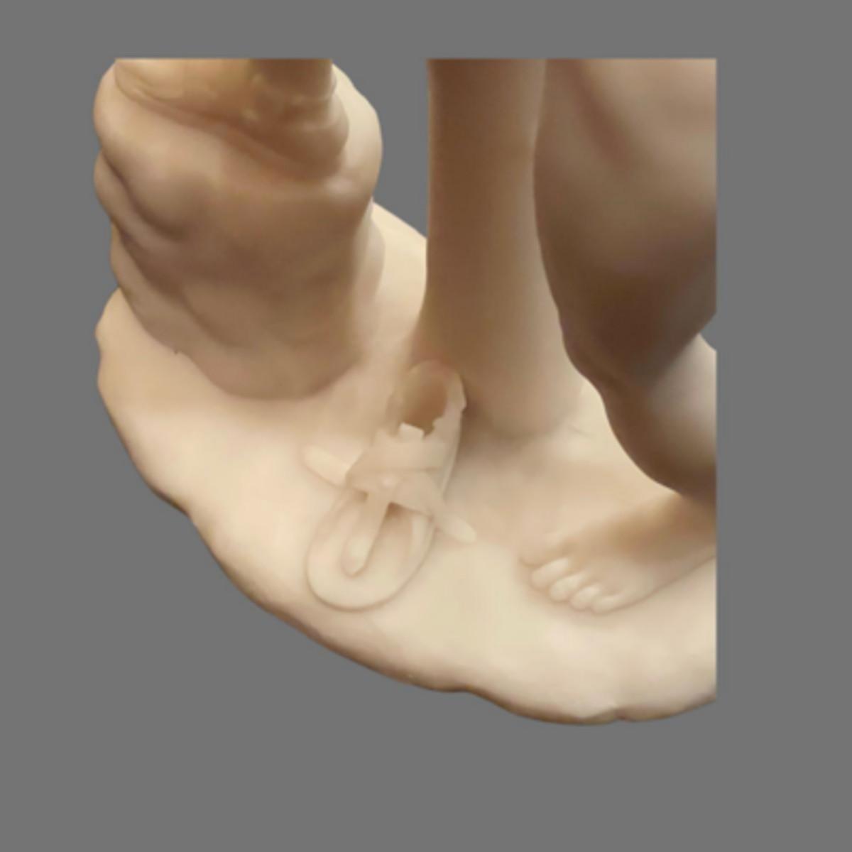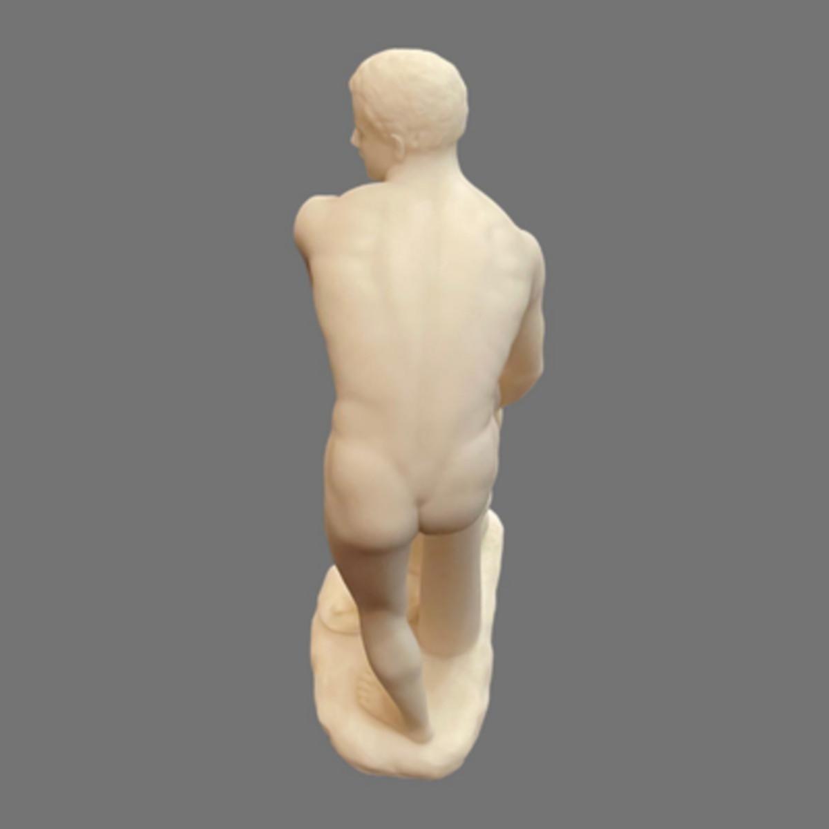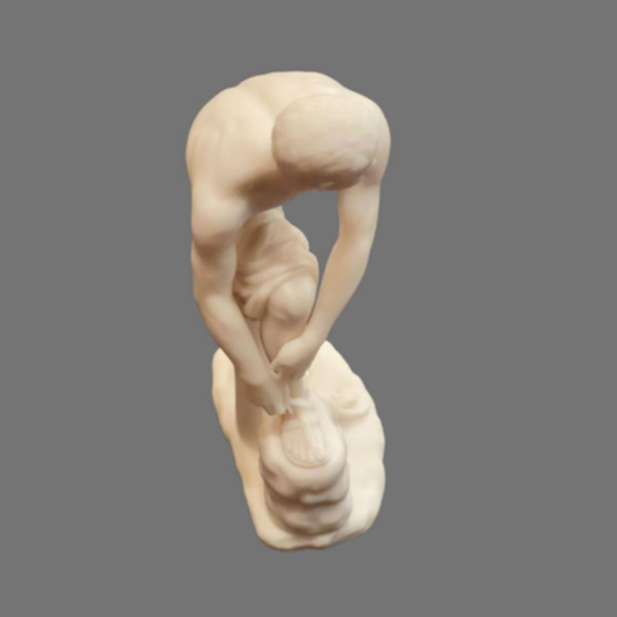 This is a stunning sculpture. It is sometimes referred to as the Lansdowne Sandal Binder. It has a nude portion to it. This piece measures 12" high