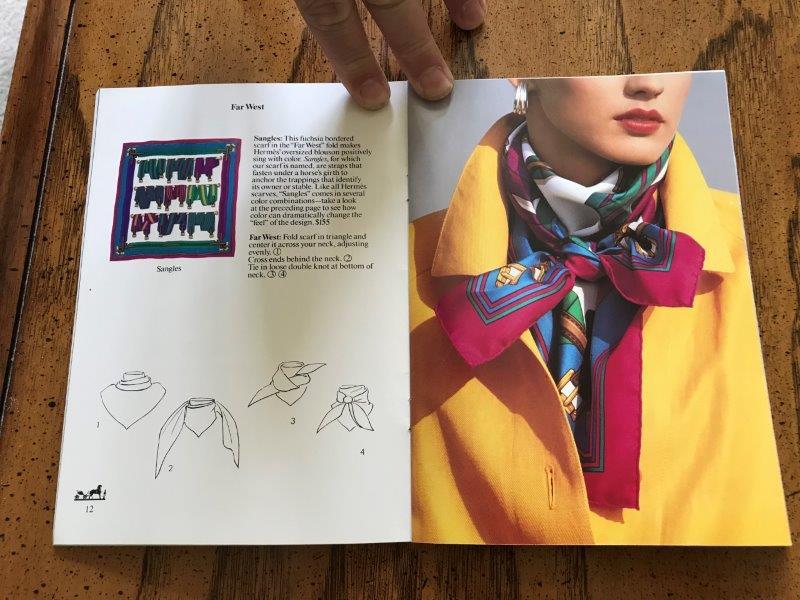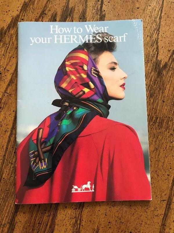 Very nice full color paperback booklet by Hermes of Paris featuring various ways to wear scarves and various Hermes scarf patterns.