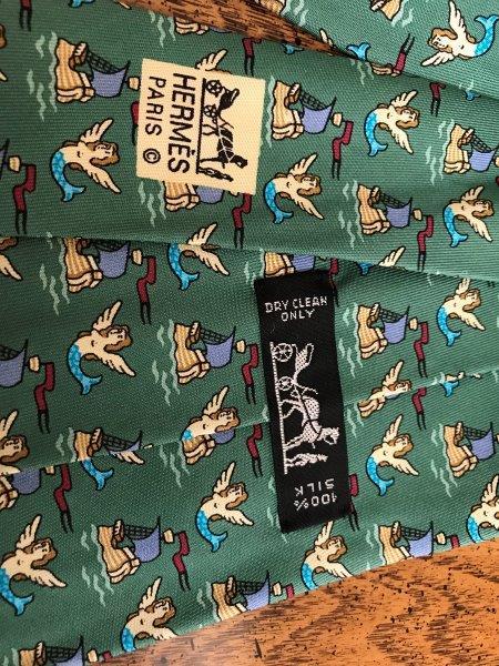 Lot 52-Hermes Paris Necktie Green with Tall Mast Boats and Mermaids