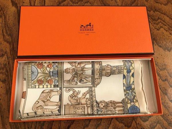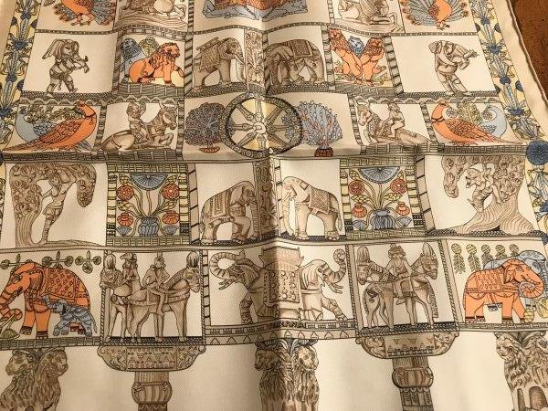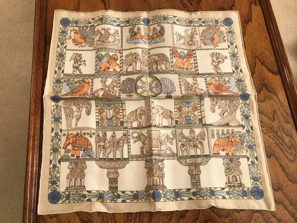 Lot 60-Hermes Paris Scarf in Box- Elephant and Pheasant in Cream