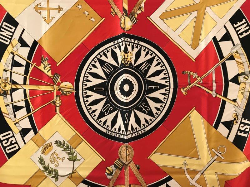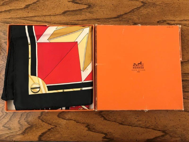 Lot 64-Hermes Paris Scarf in Box- Sextants in Red and Black