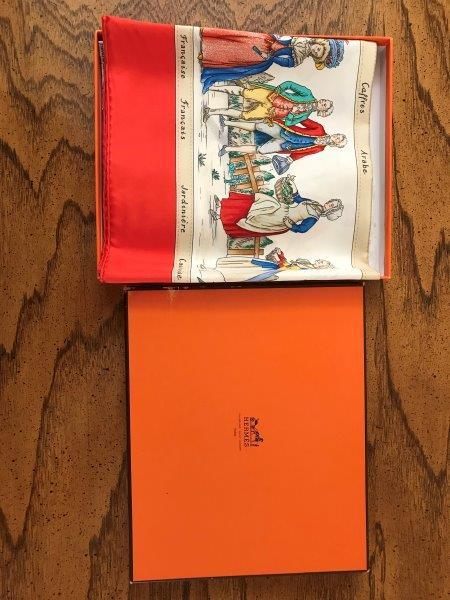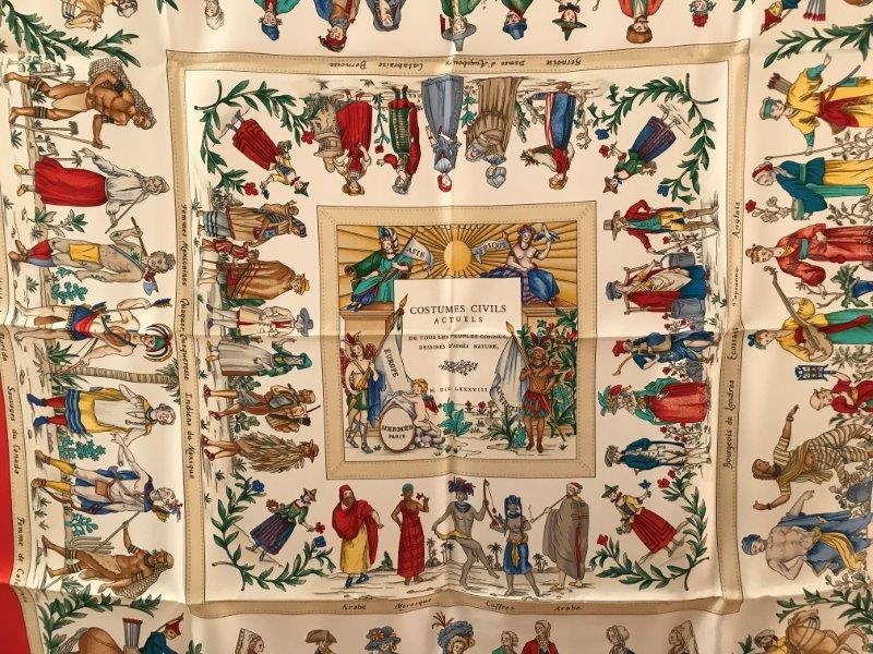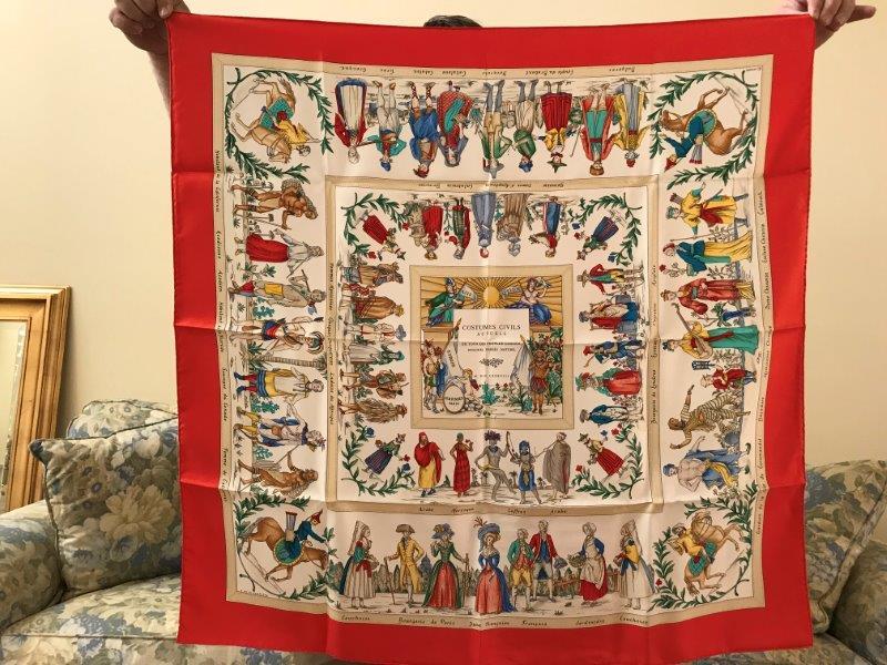 Lot 66-Hermes Paris Scarf in Box- Costumes Civils Actuels in Red