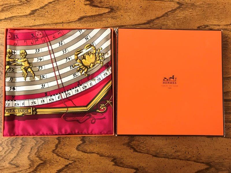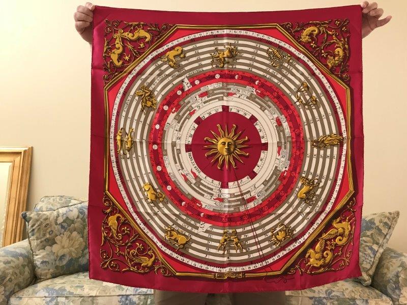 Lot 68-Hermes Paris Scarf in Box- Zodiac in Burgundy