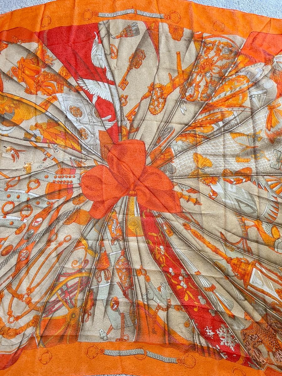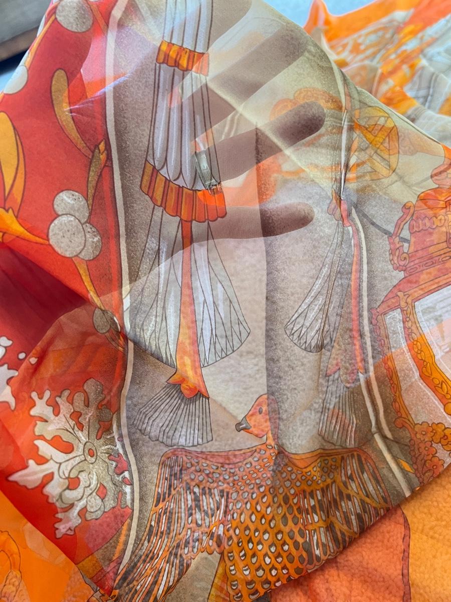 Gorgeous shear silk Hermes scarf. Oversized 54” square. Comes with box and tissue paper.