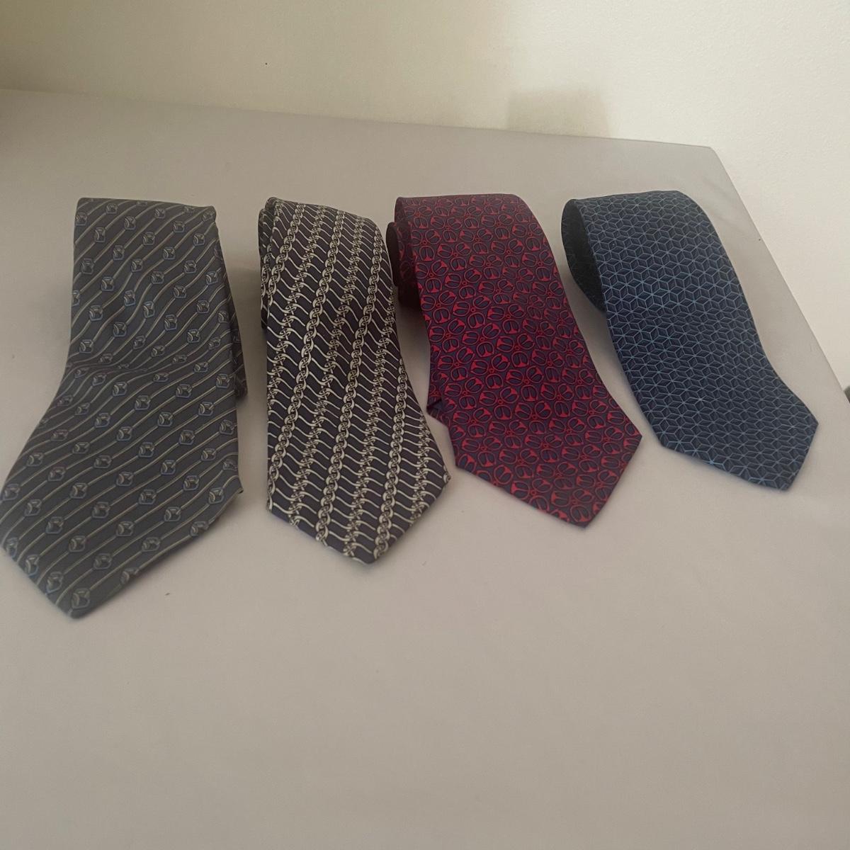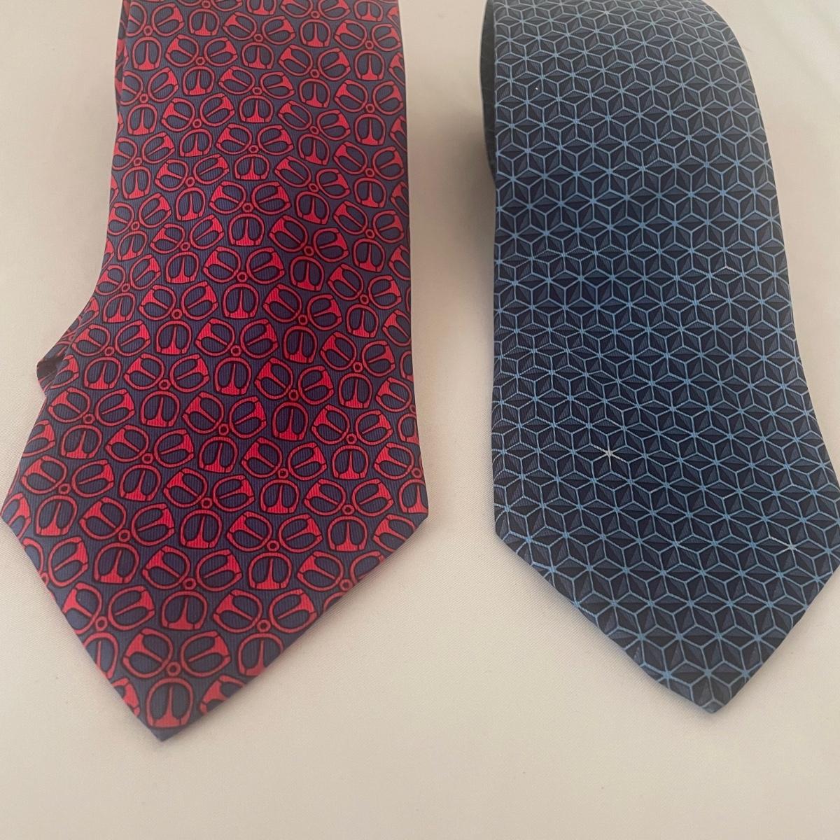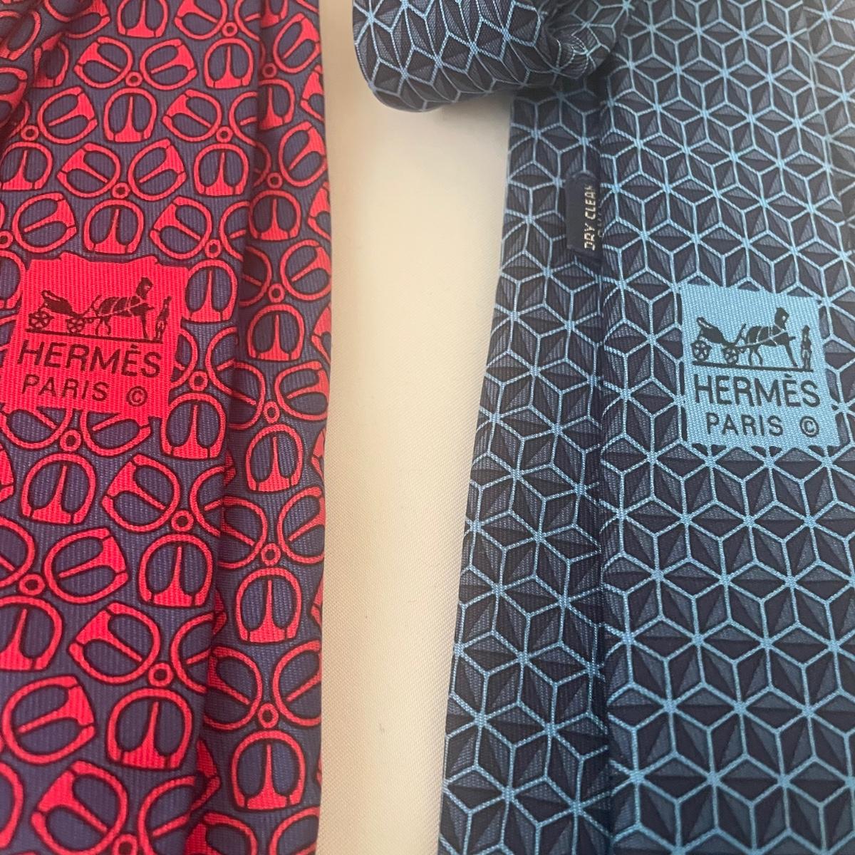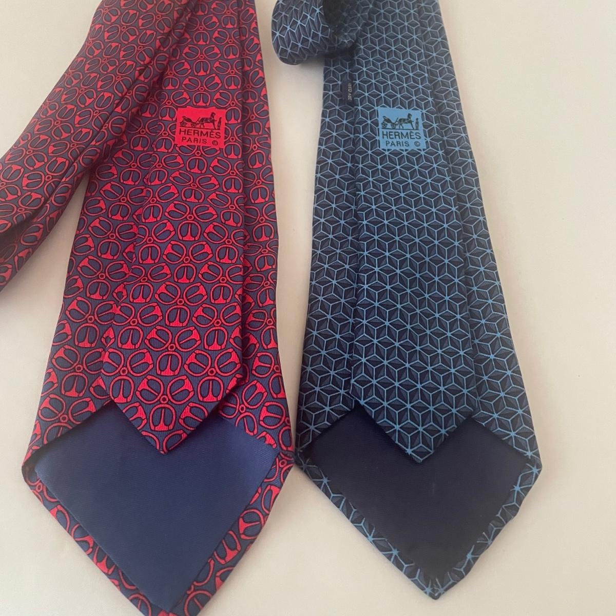 Six of these seven silk ties are labeled Hermes and are 100% silk; the grey tie is also 100% silk and has a matching Made in France tag but is missing the Hermes tag. It is most likely a Hermes as well. All ties are in excellent condition and measure 3.25” wide (widest point) x 54” long.