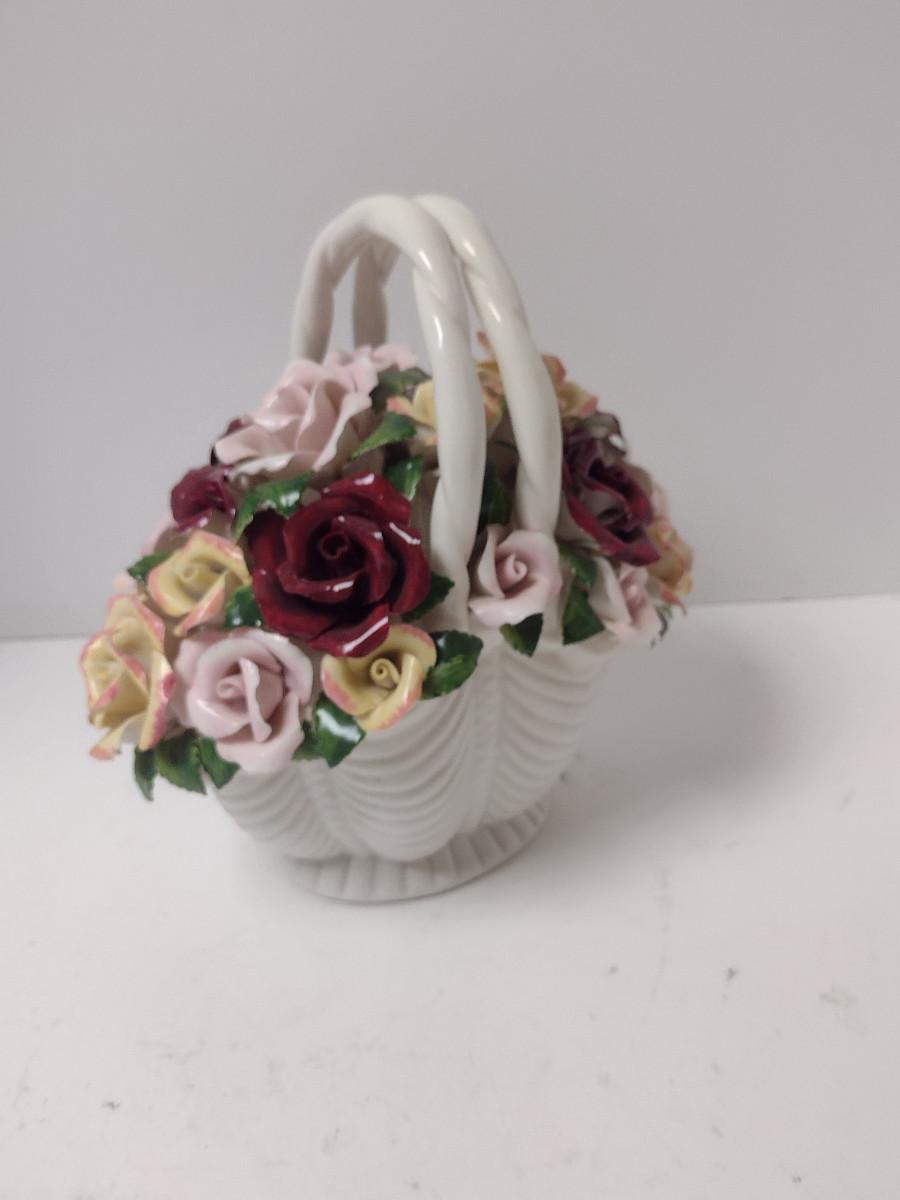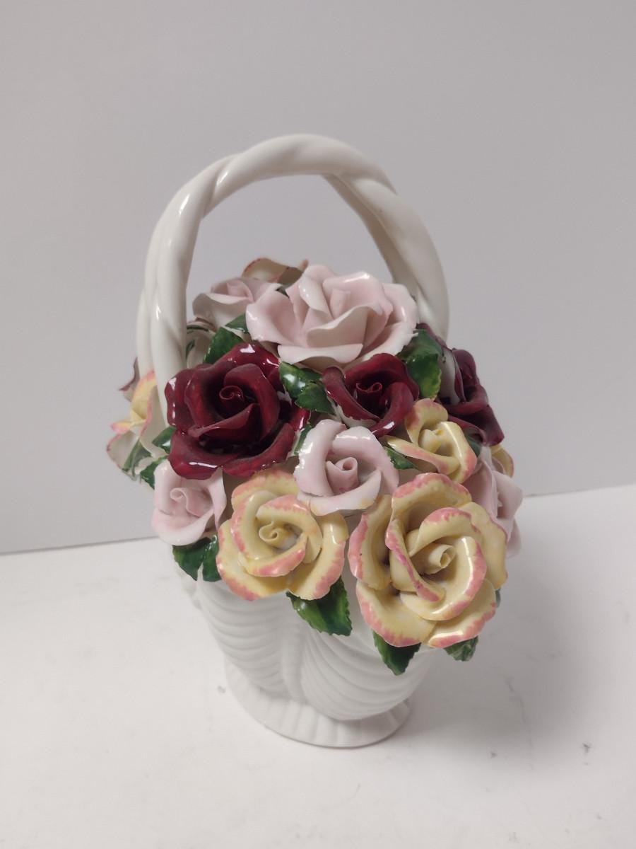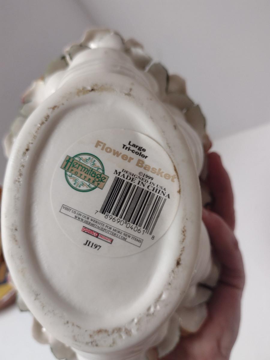 Hermitage Pottery Flower Basket- Approx 9 1/4" Tall. Some flowers have chipping.