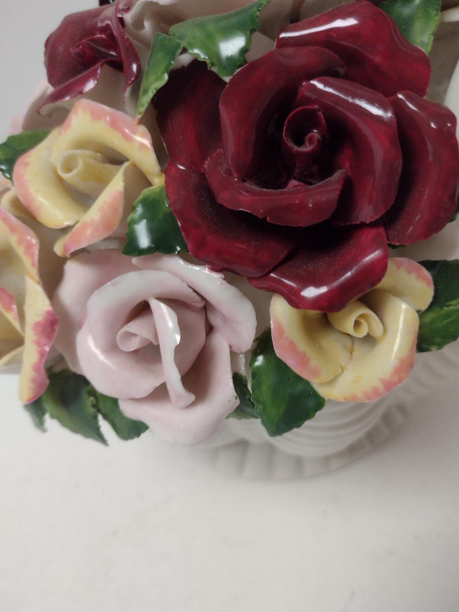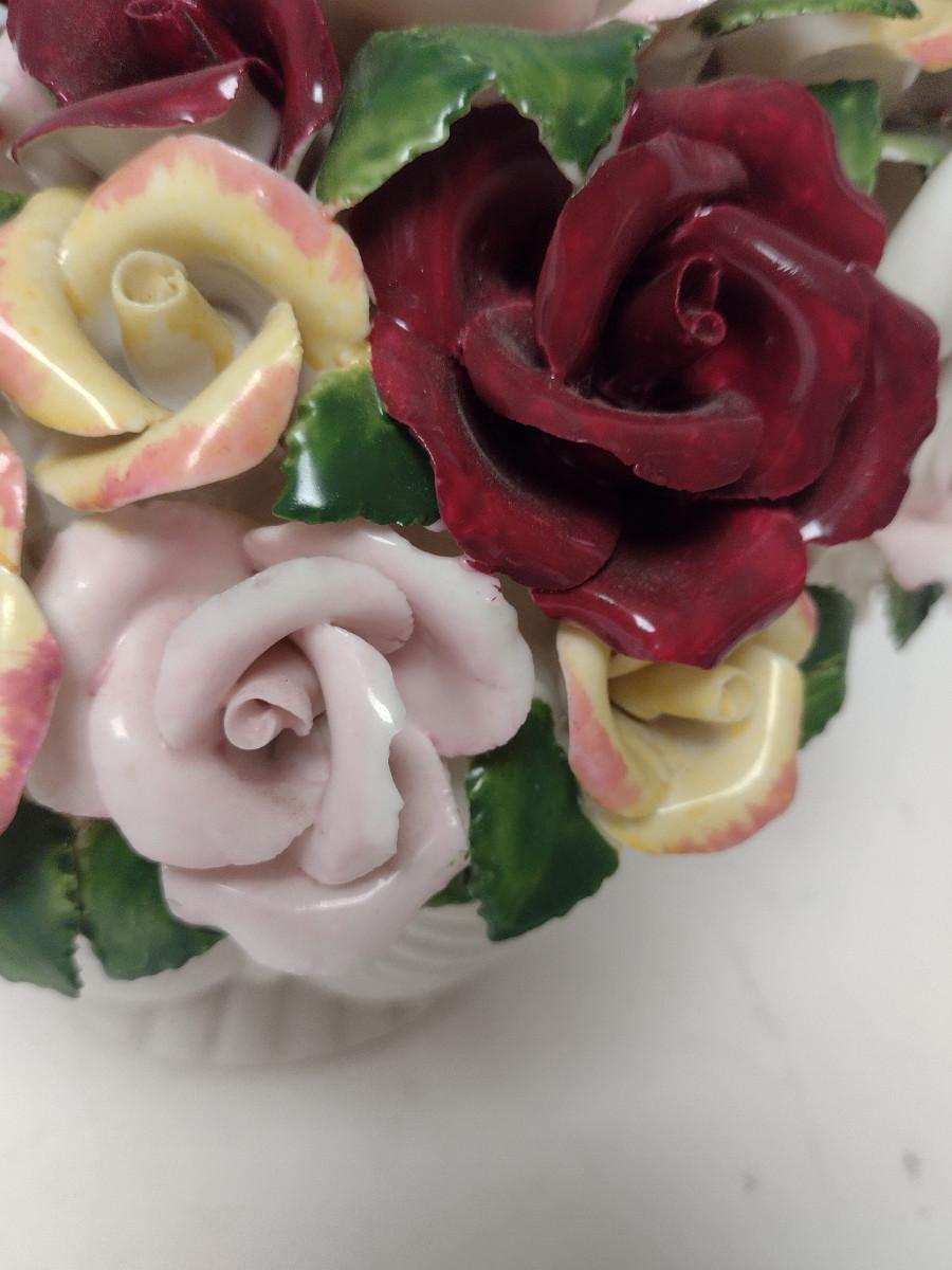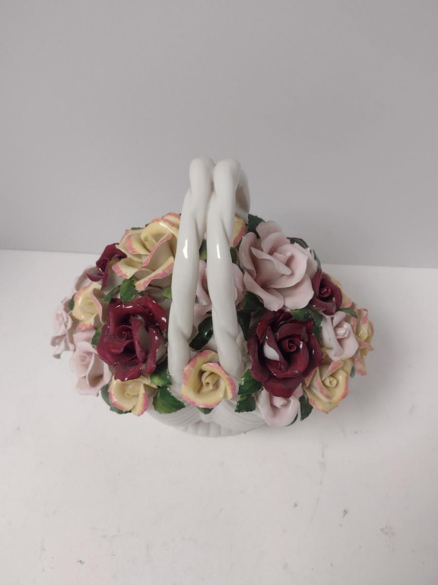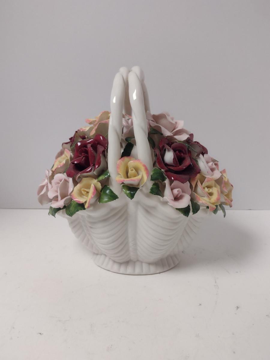 Hermitage Pottery Flower Basket- Approx 9 1/4" Tall. Some flowers have chipping.
