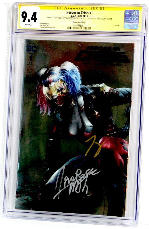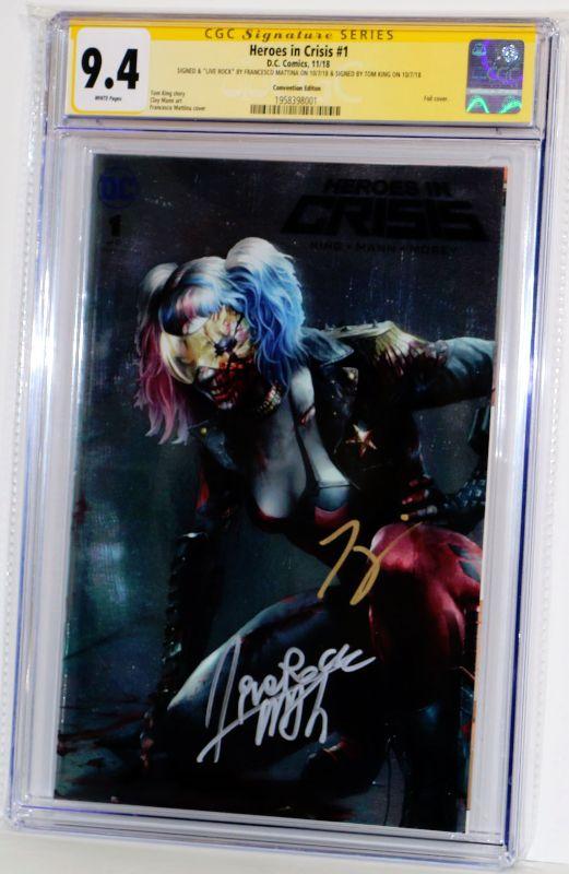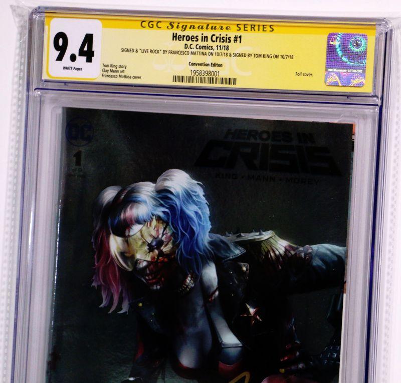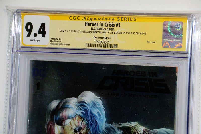 Collector's Item - Foil Cover Convention Edition of Heroes in Crisis #1 CGC Signature Series 9.4, signed by Francesco Mattina (and Live Rock) and Tom King, DC Comics 11/2018 - Rare!