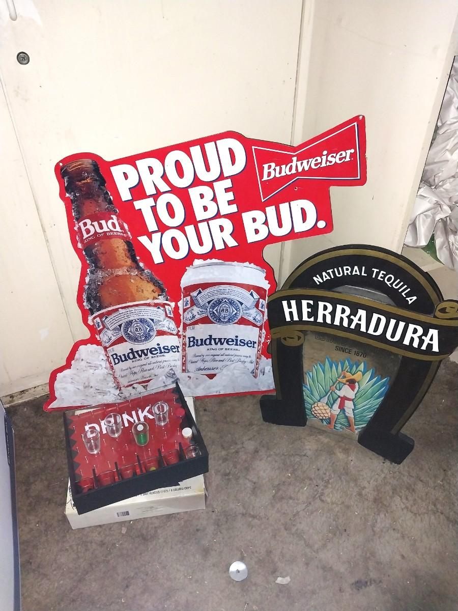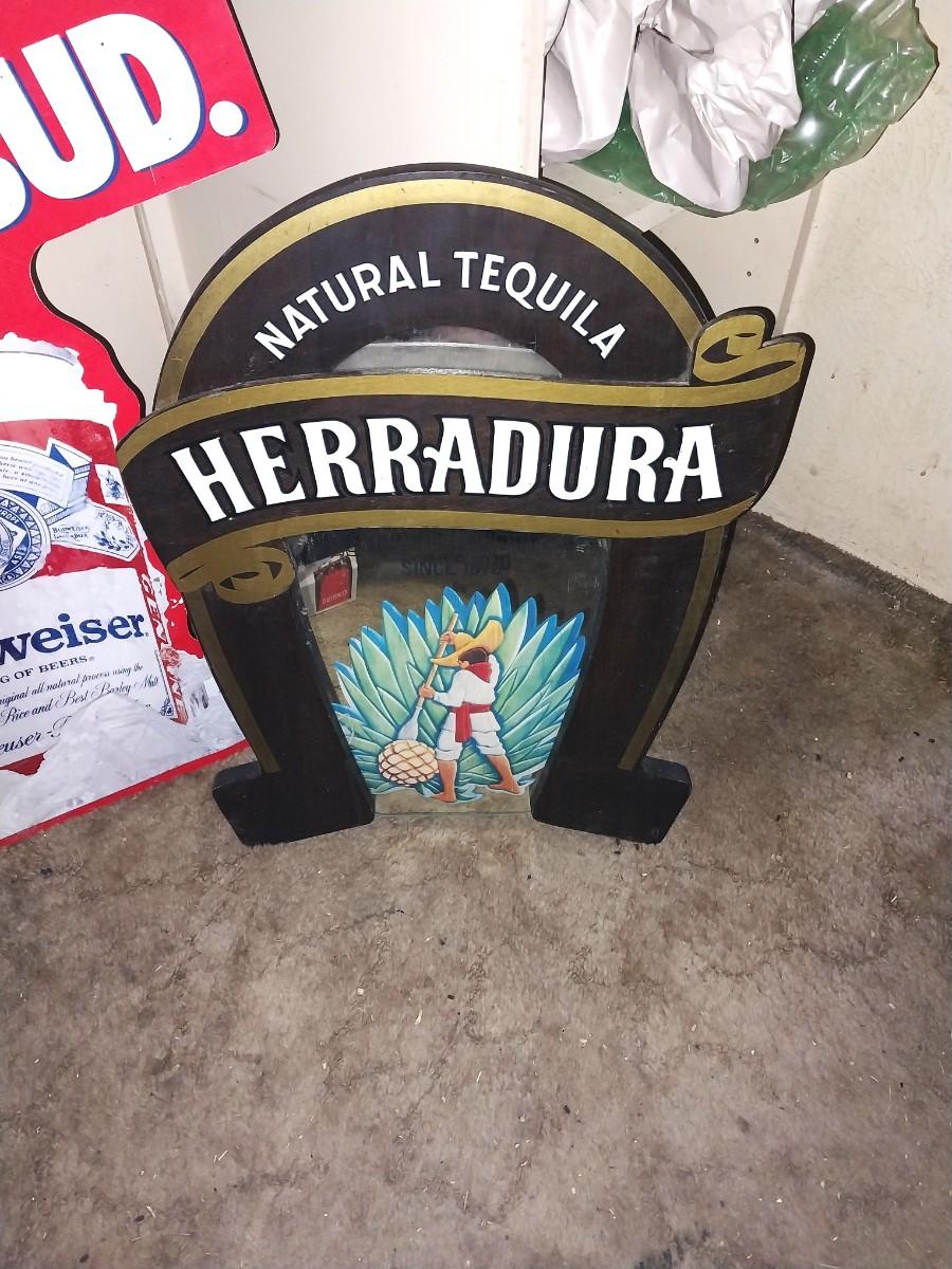 HERRADURA TEQUILA MIRROR -TIN BUDWEISER SIGN AND DRINKING SHOT GAME