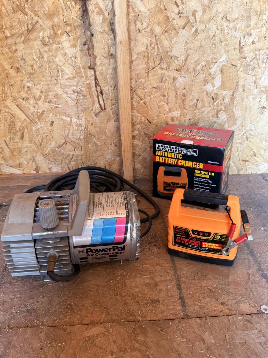 Air compressor & battery charger in working conditions