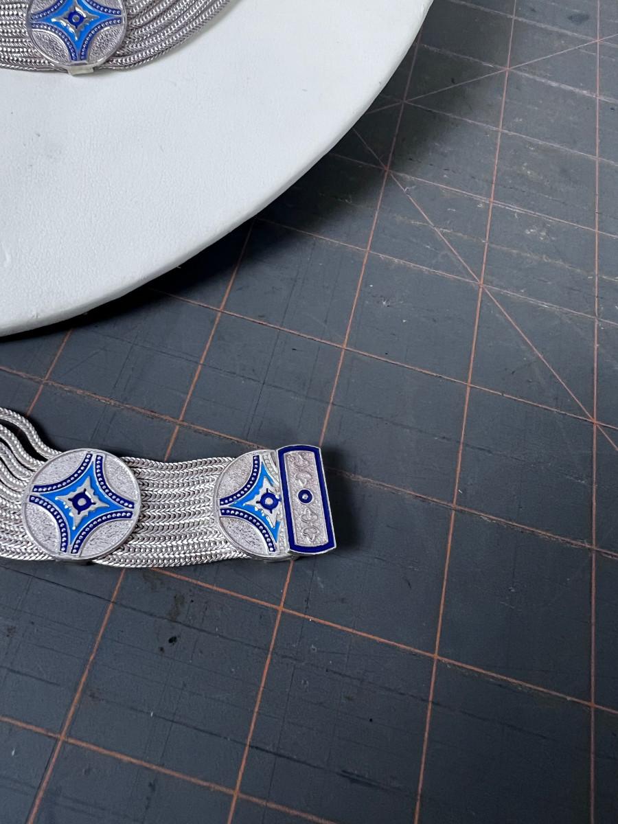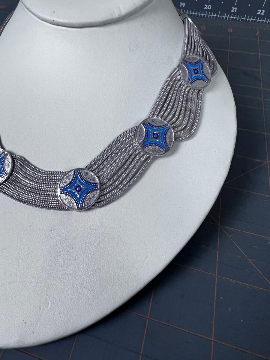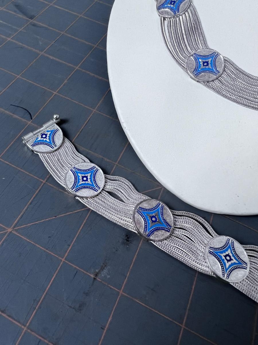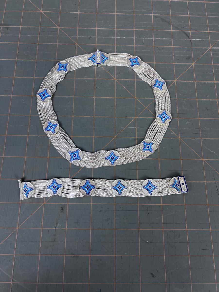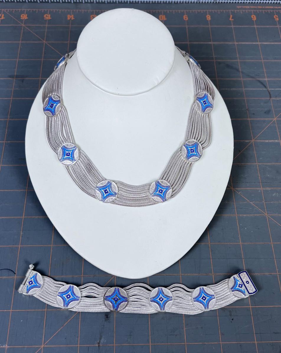 Herringbone Chain Necklace and Bracelet Enamel & 925