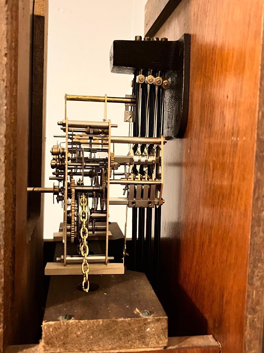 72 3/8” H x 15 5/8” W x 9 1/4” D ~ Chimes perfectly every 15 minutes.