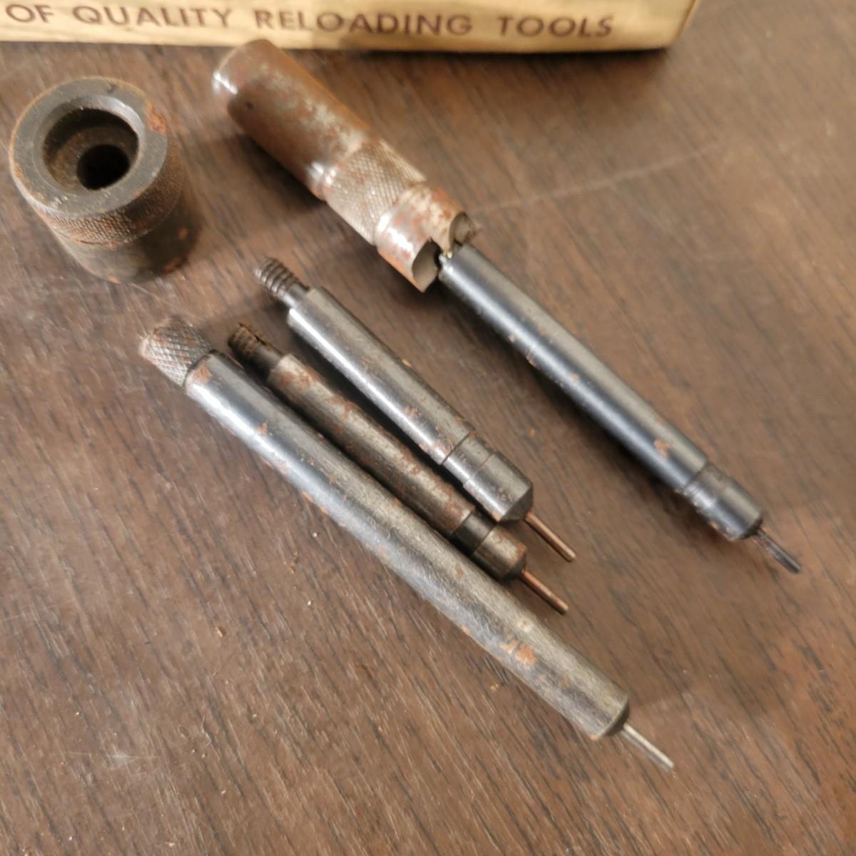 A Herter's reloading tool in it's original packaging, but has been used. Lot also includes a MTM loading block that holds shells for all rifles and .38 to .357 caliber on one side and 9mm to 45 caliber on the other. Block measures approximately 11" x 5.5" x 1". Shipping available
