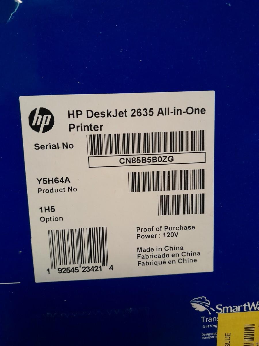 HEWLETT PACKARD WIRELESS PRINTER PRINT/SCAN/COPY WITH HP SMART APP DESKJET 2635 ALL IN ONE