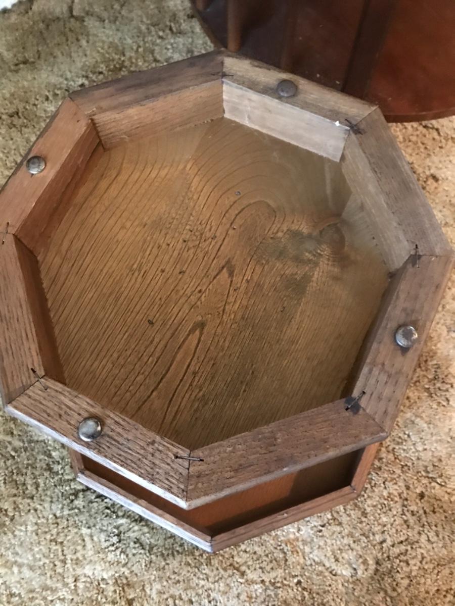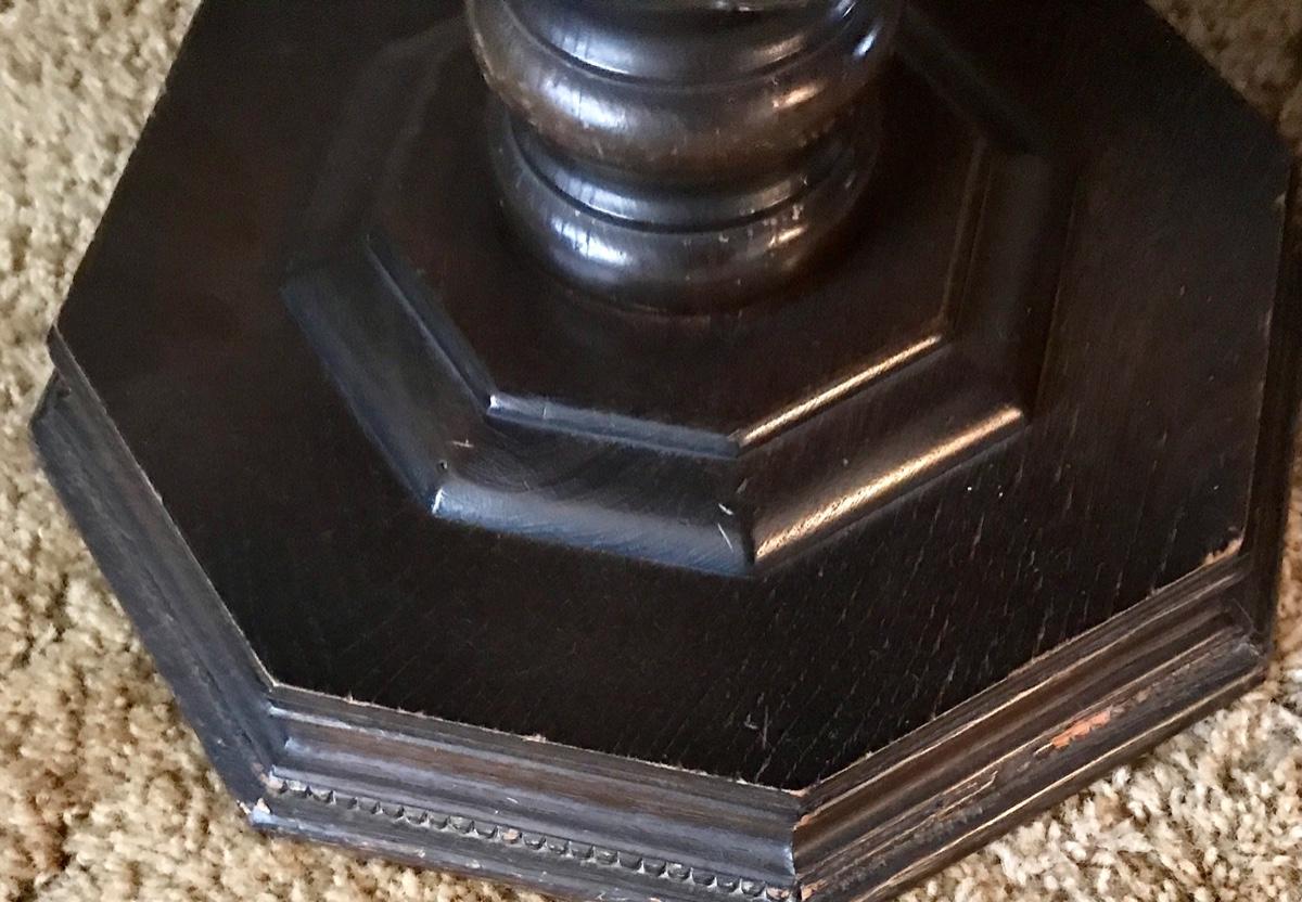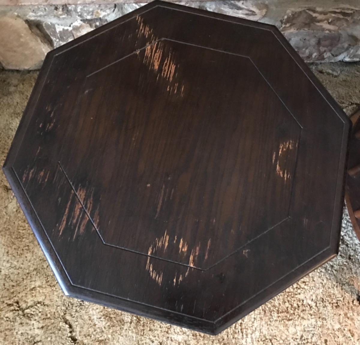 Hexagon end table coffee table Spanish gothic Revival, dark carved wood