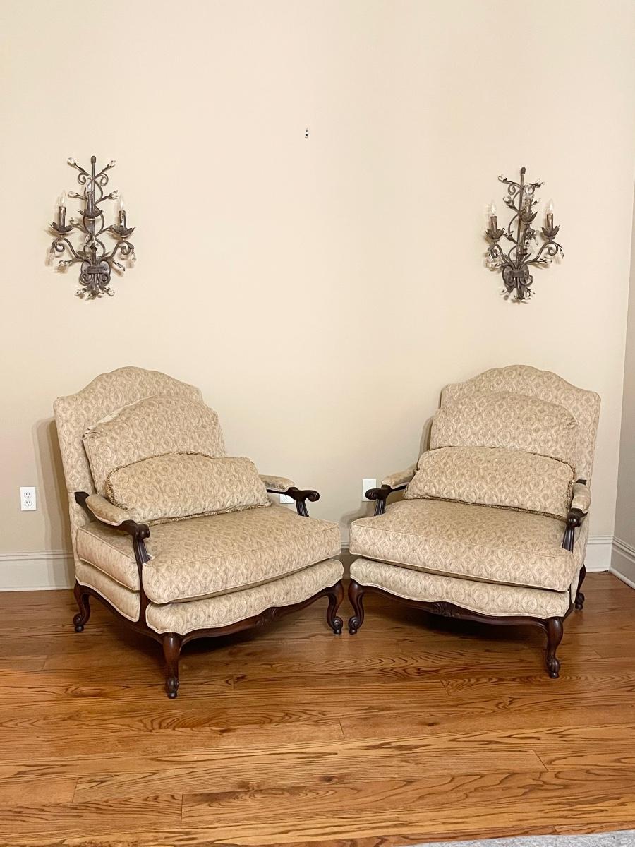 HICKORY WHITE ~ Pair (2) ~ Oversized Upholstered Arm Chairs ~ Excellent