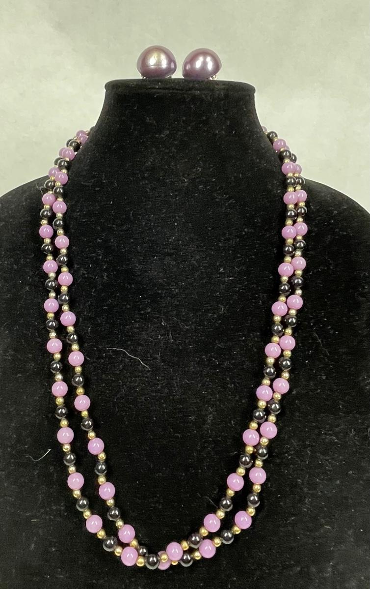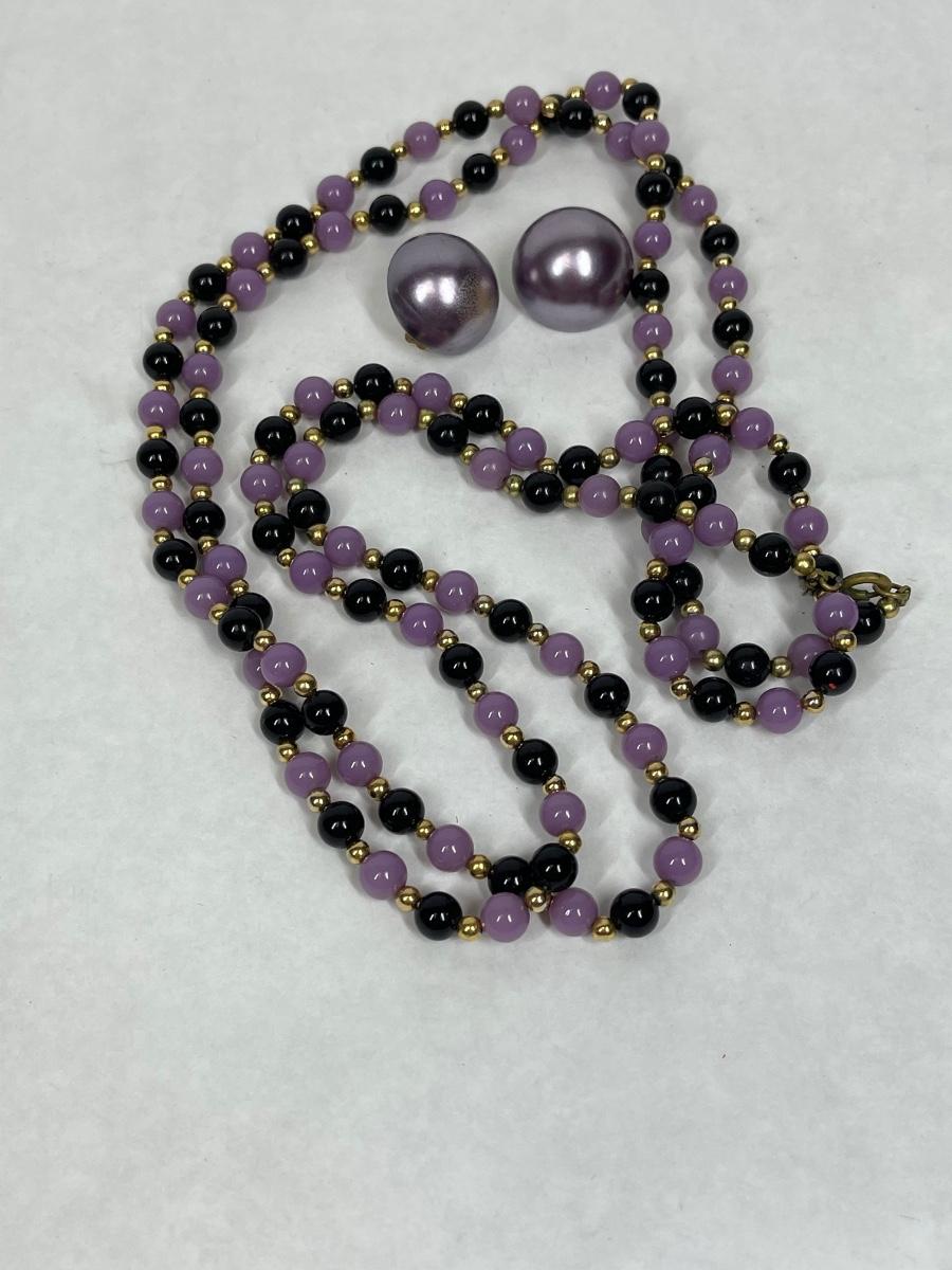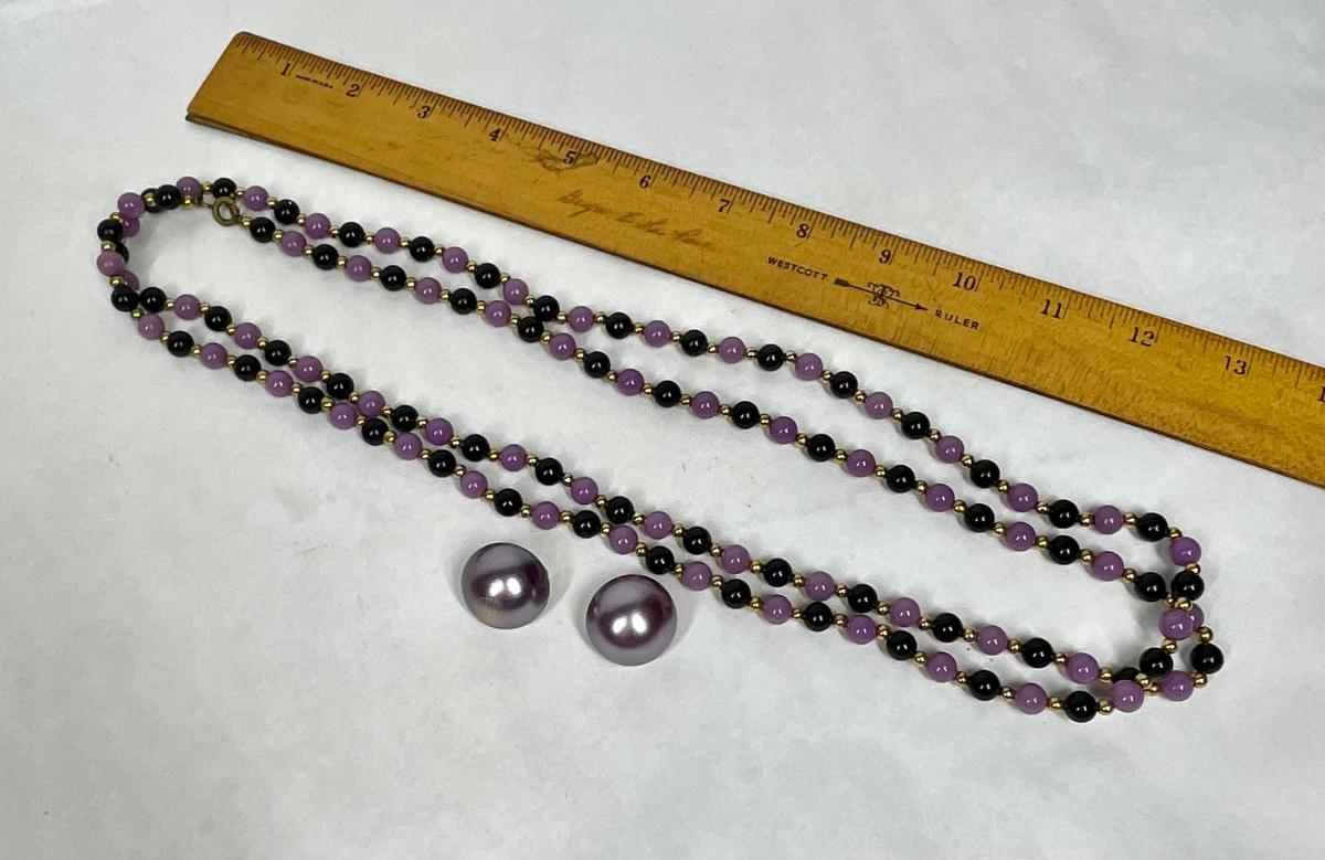 Earrings & Necklace Vintage Jewelry Set Lavender & Black