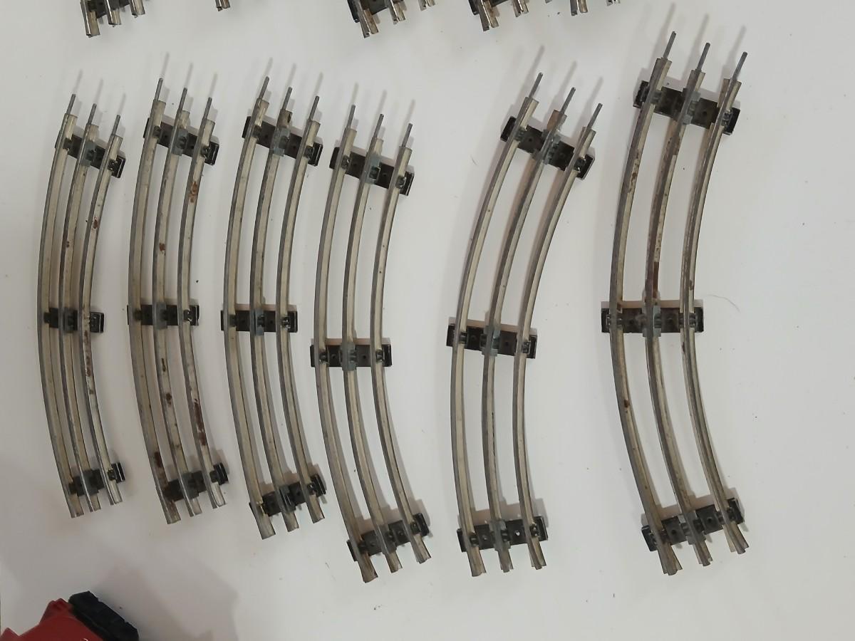 Over 30 pieces of O-gauge 3-rail track, including straights, curves, switch tracks & a crossing