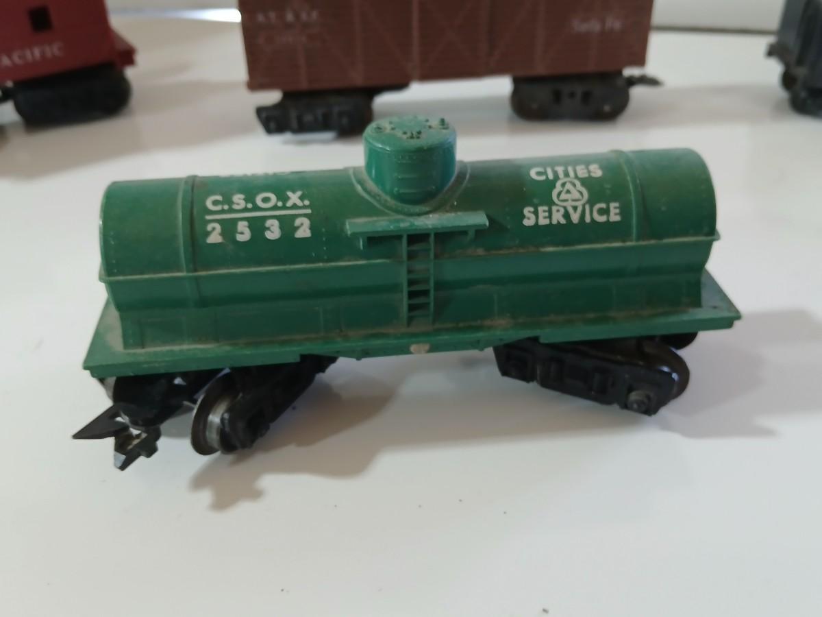 Components show wear consistent with age — some rust, dust, and patina — great for restoration or display. Locomotive wheels turn freely; power-up not tested.