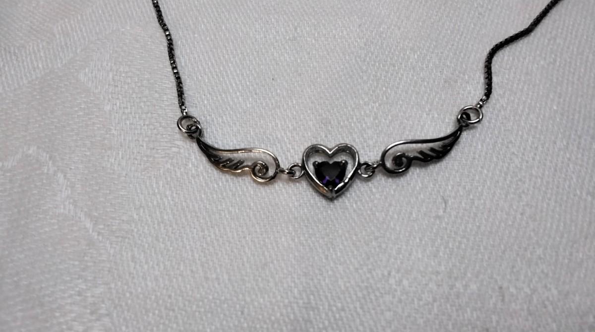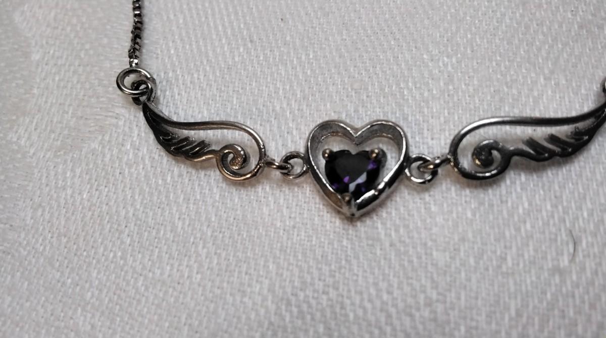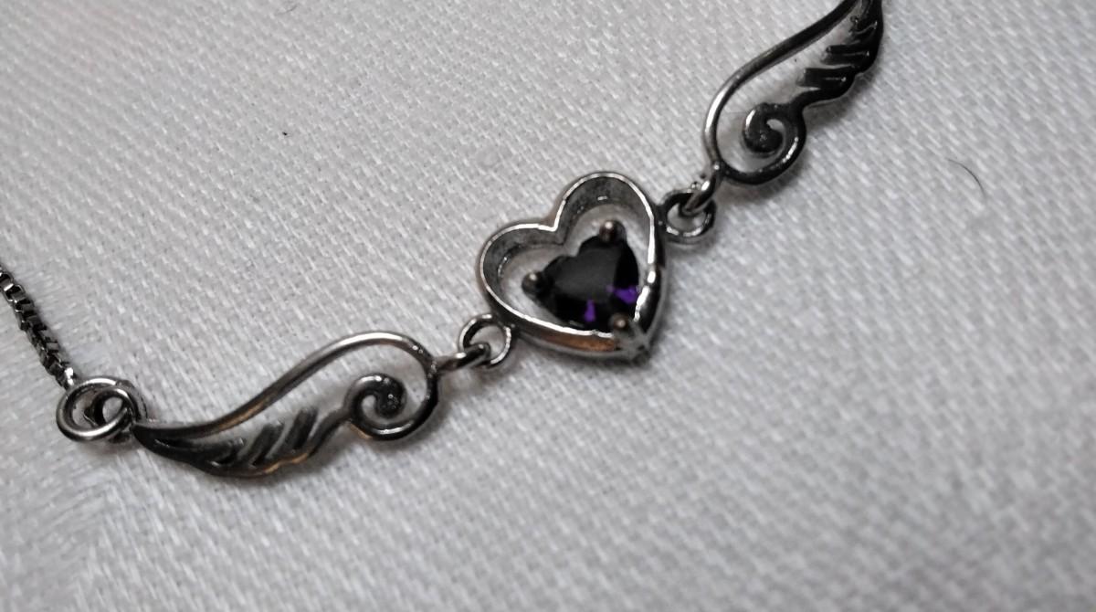 Vintage Heart Shaped Amethyst 925 16" Necklace