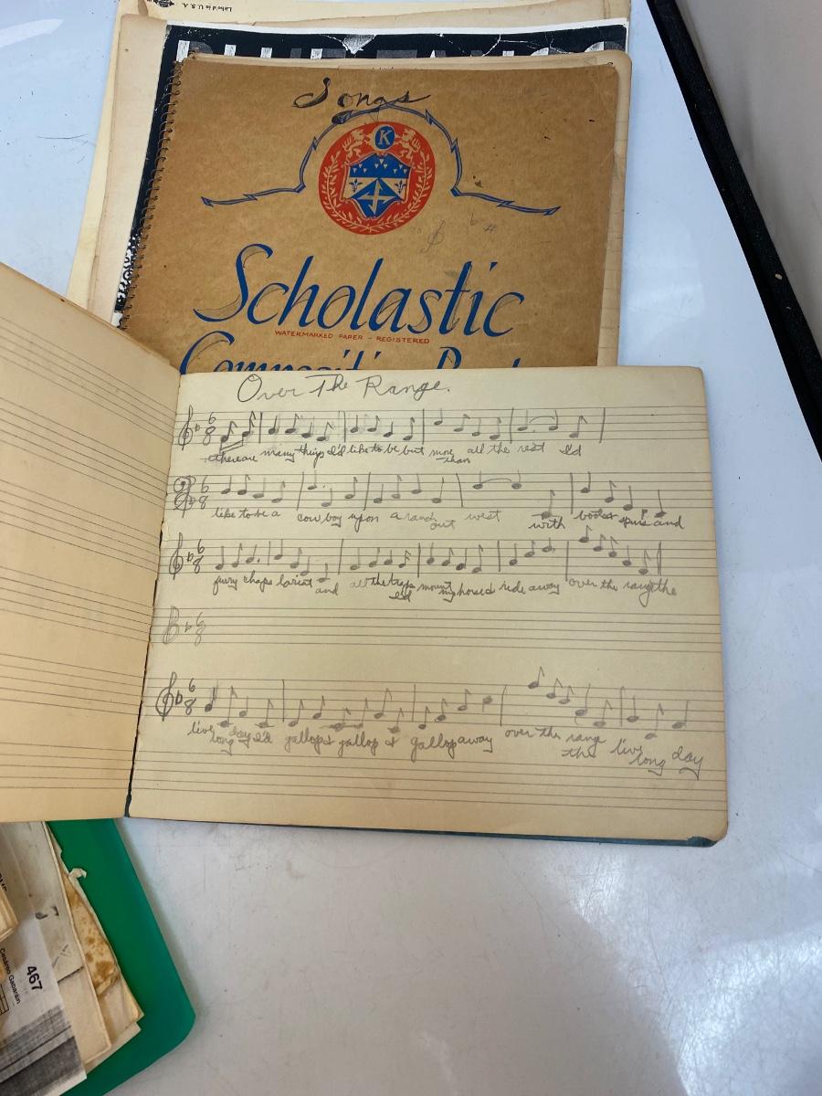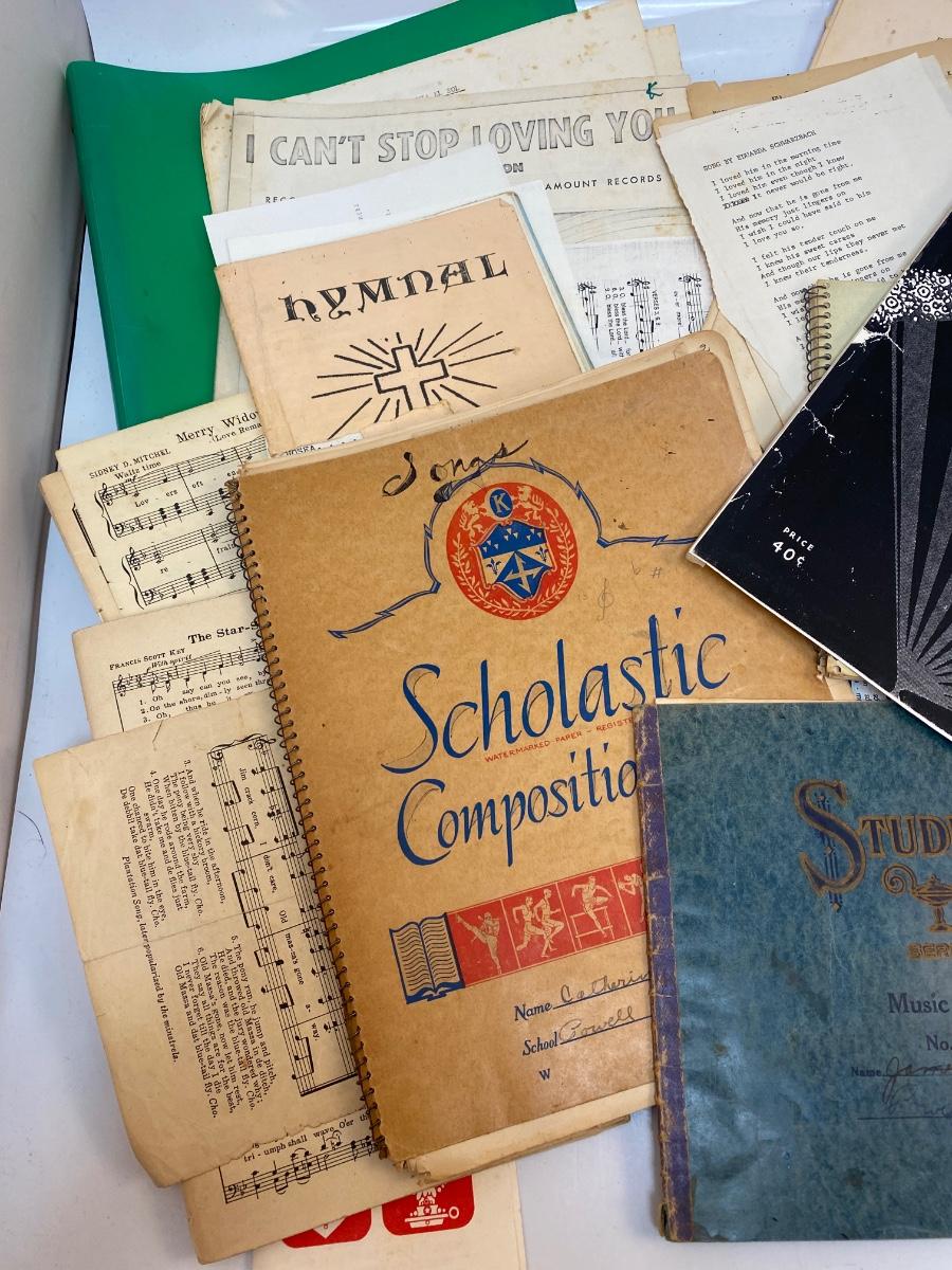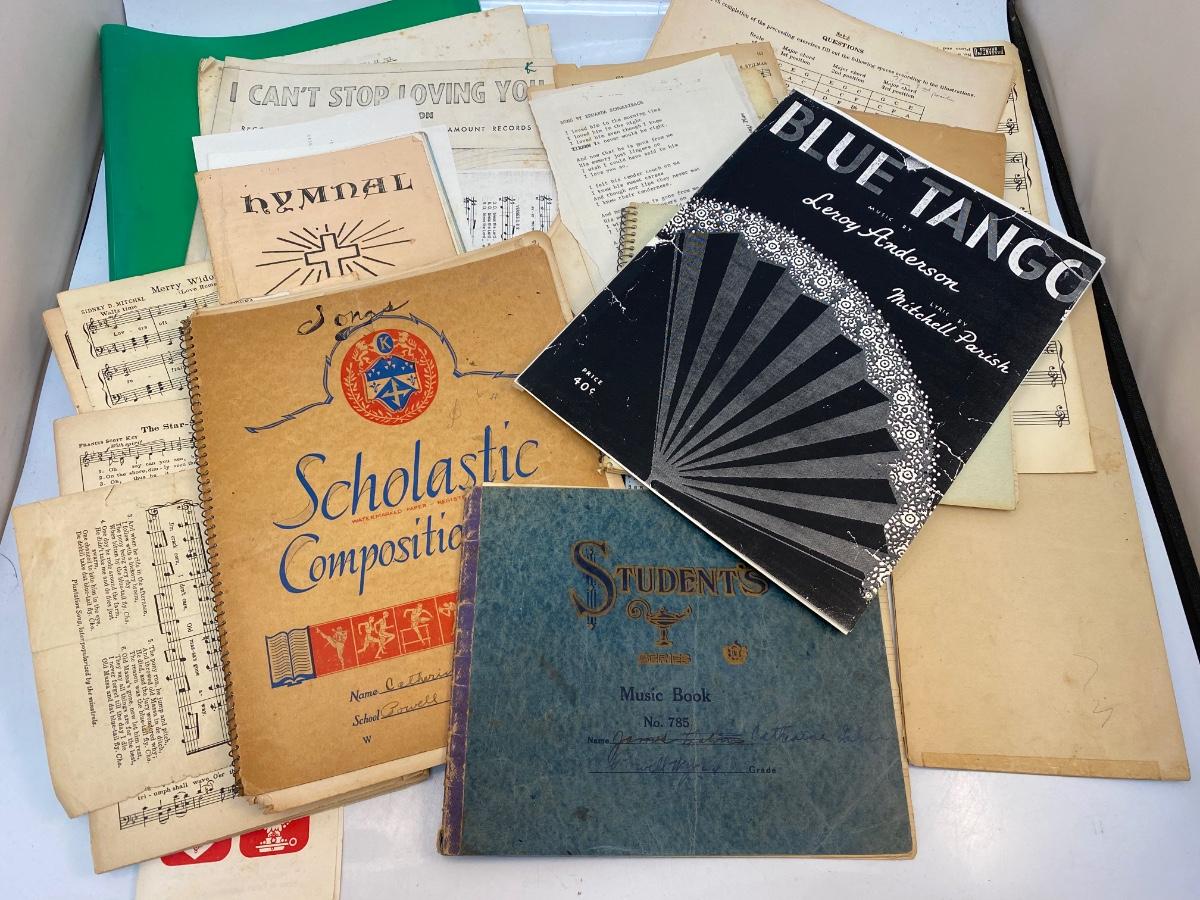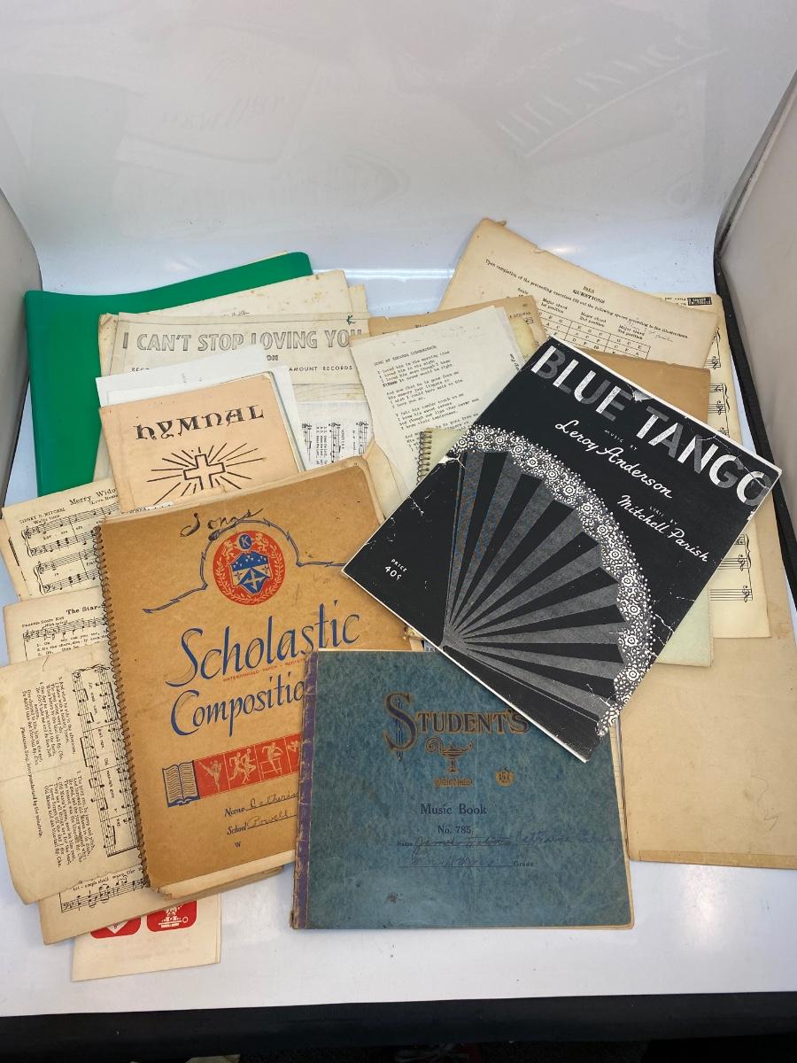 Mixed Lot of Worn Sheet Music Song Books Student Notes Print Outs Scrapbook