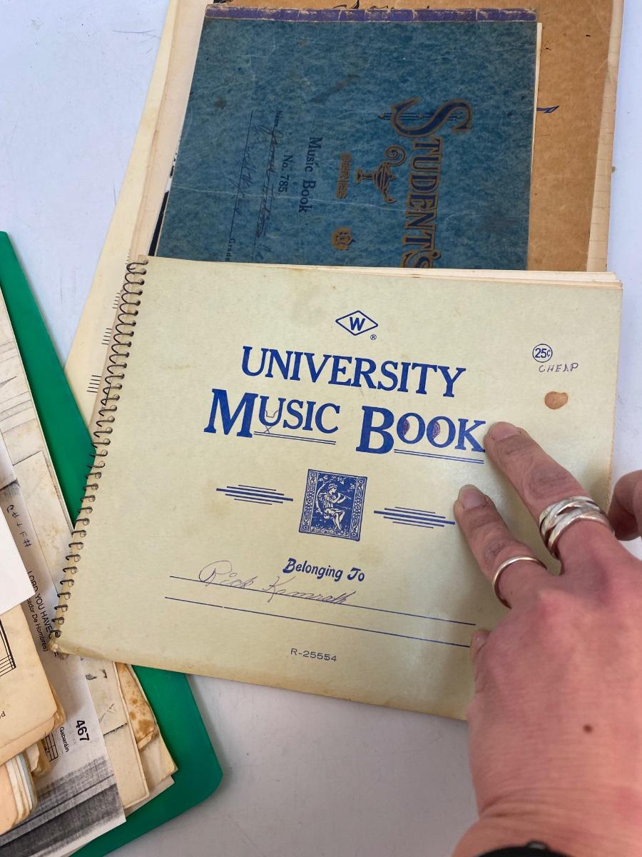 Mixed Lot of Worn Sheet Music Song Books Student Notes Print Outs Scrapbook. In aged condition.