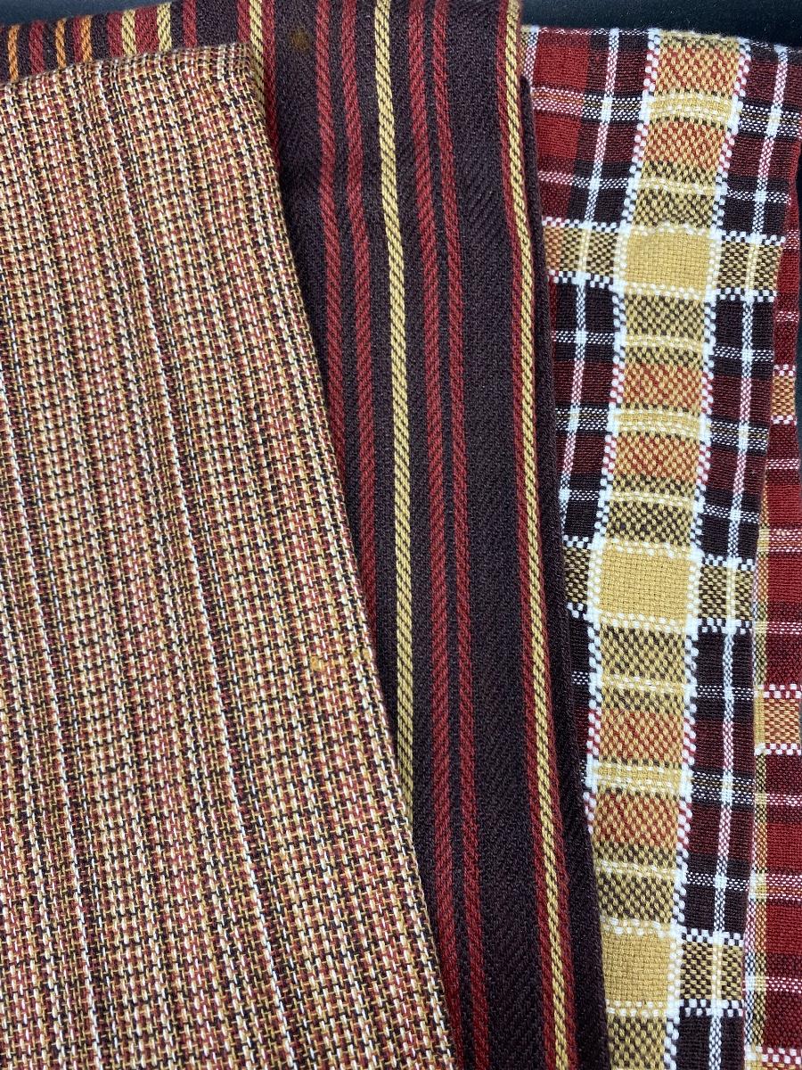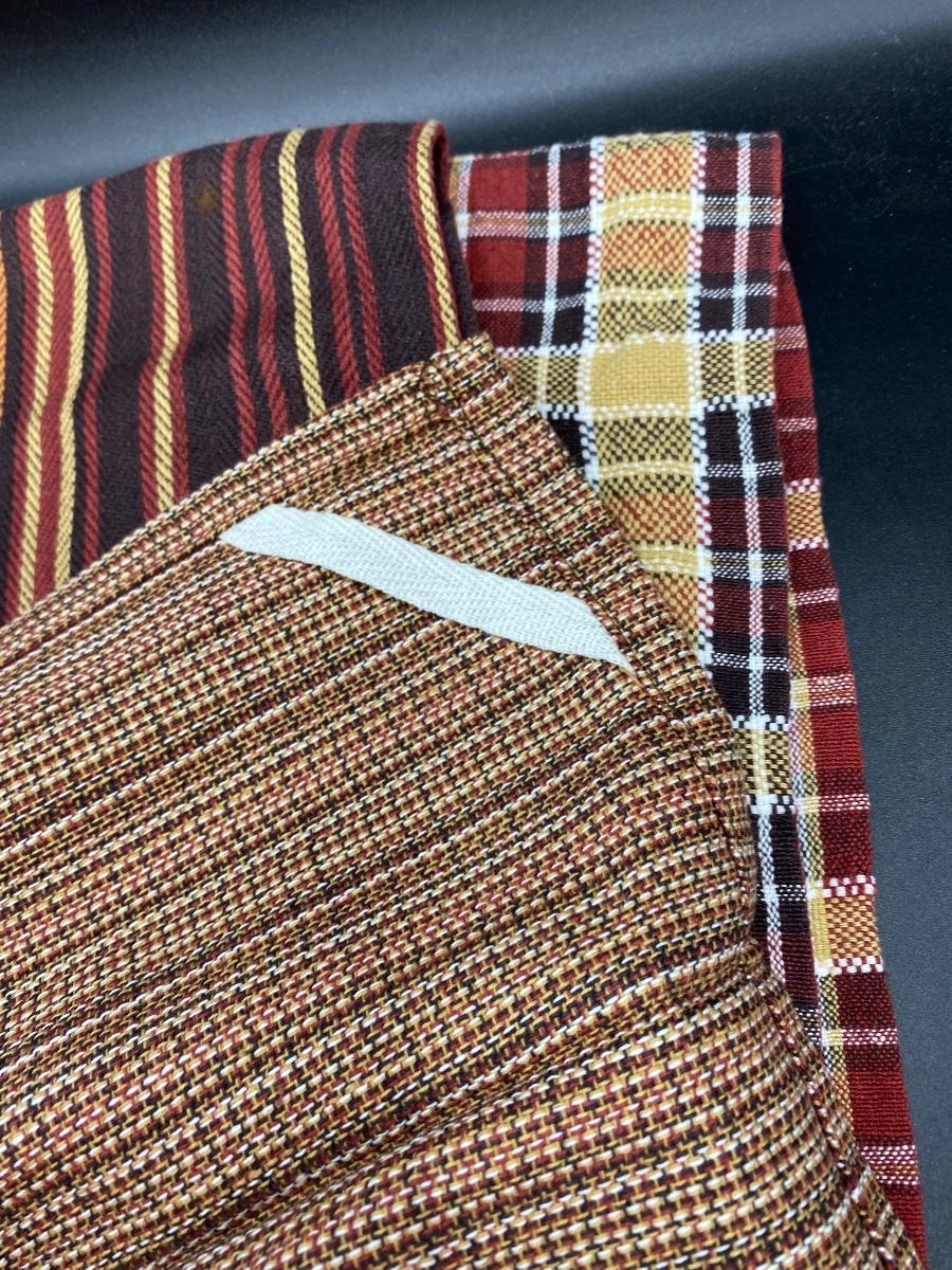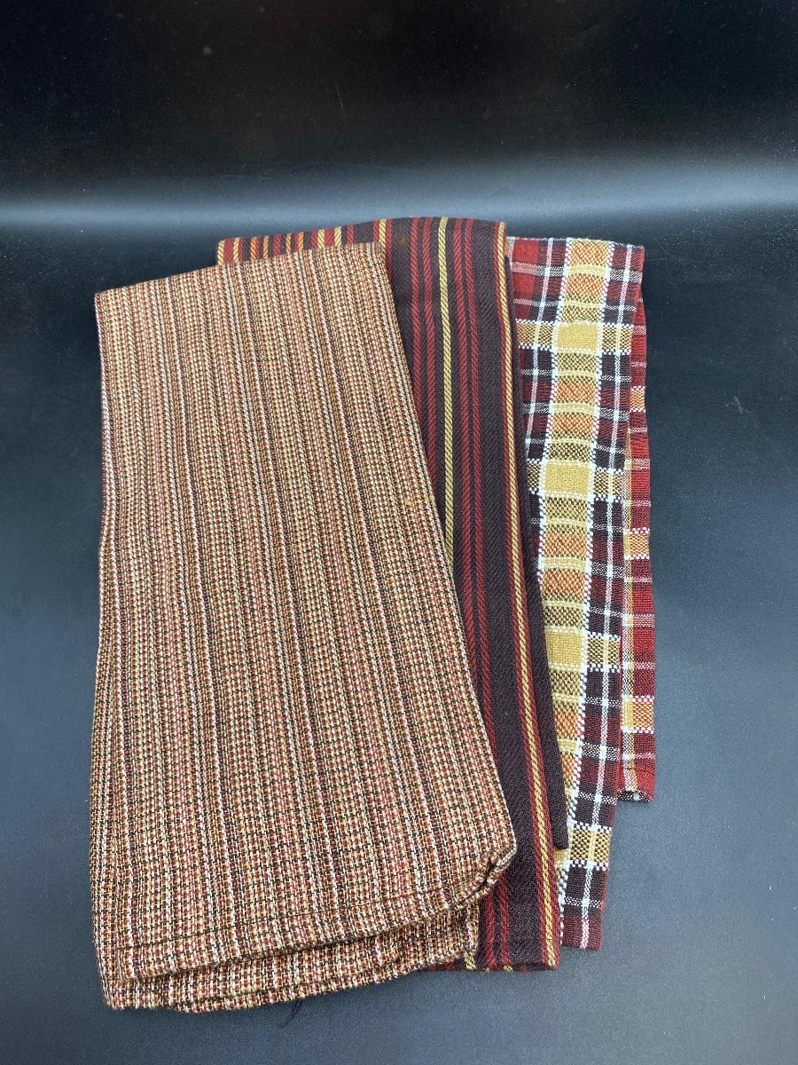 Set of 3 Fall Autumn Warm Tone Dish Towels. All in good condition, no tags but does have small corner strap for hanging on hook.