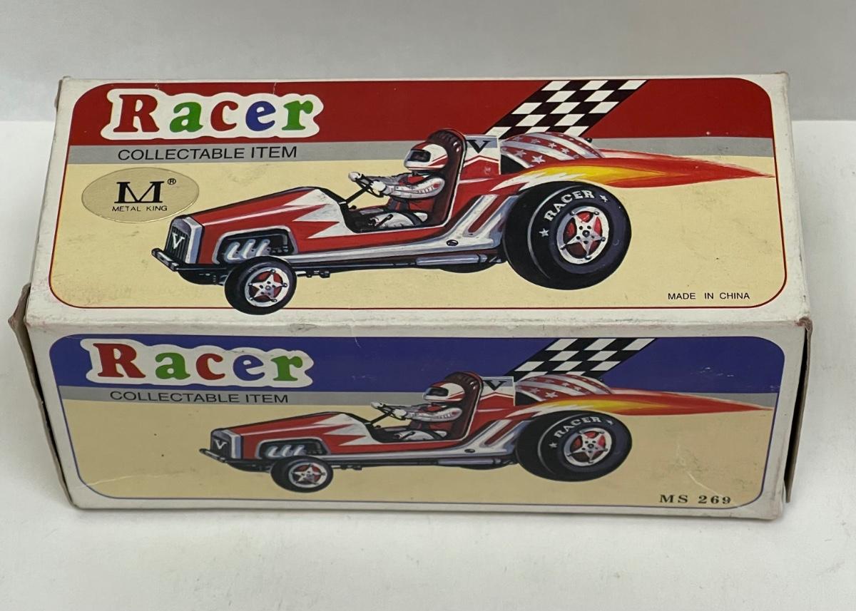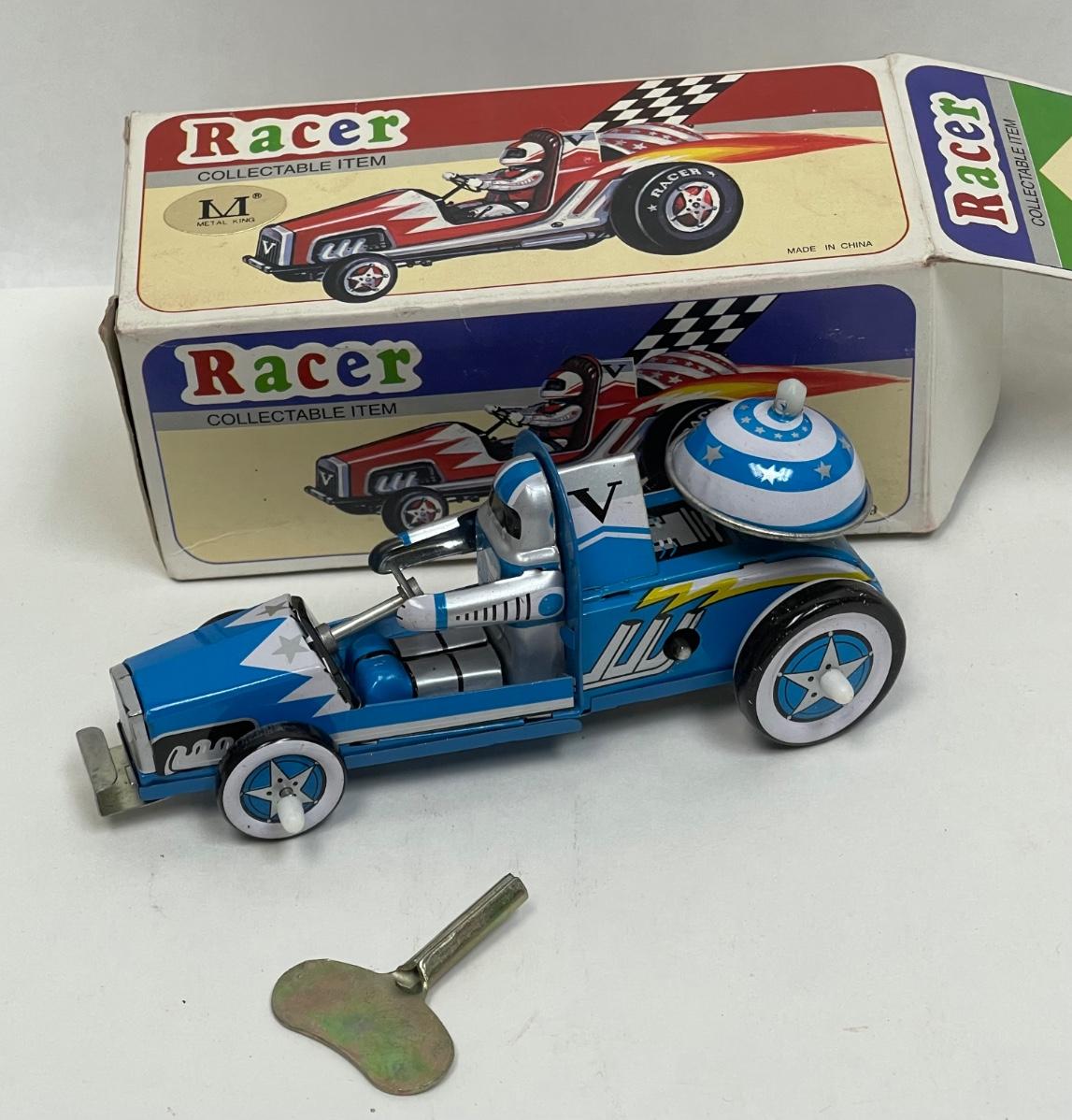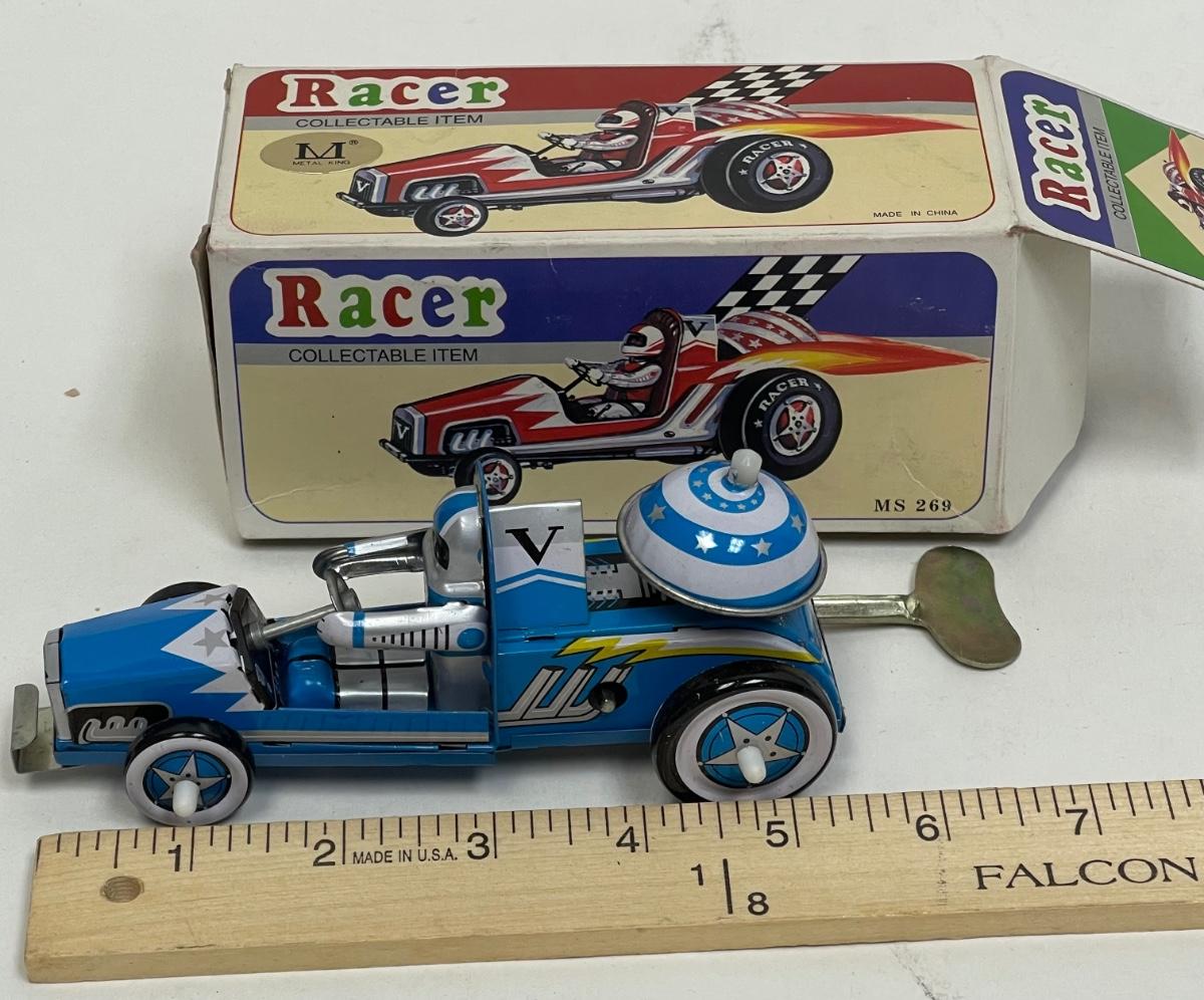 Vintage Tin Toy Clockwork Racer Metal King Collectable Blue Race Car