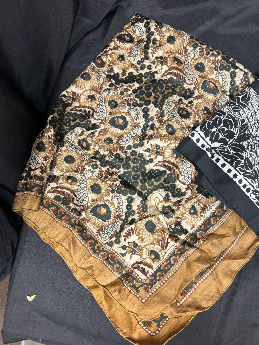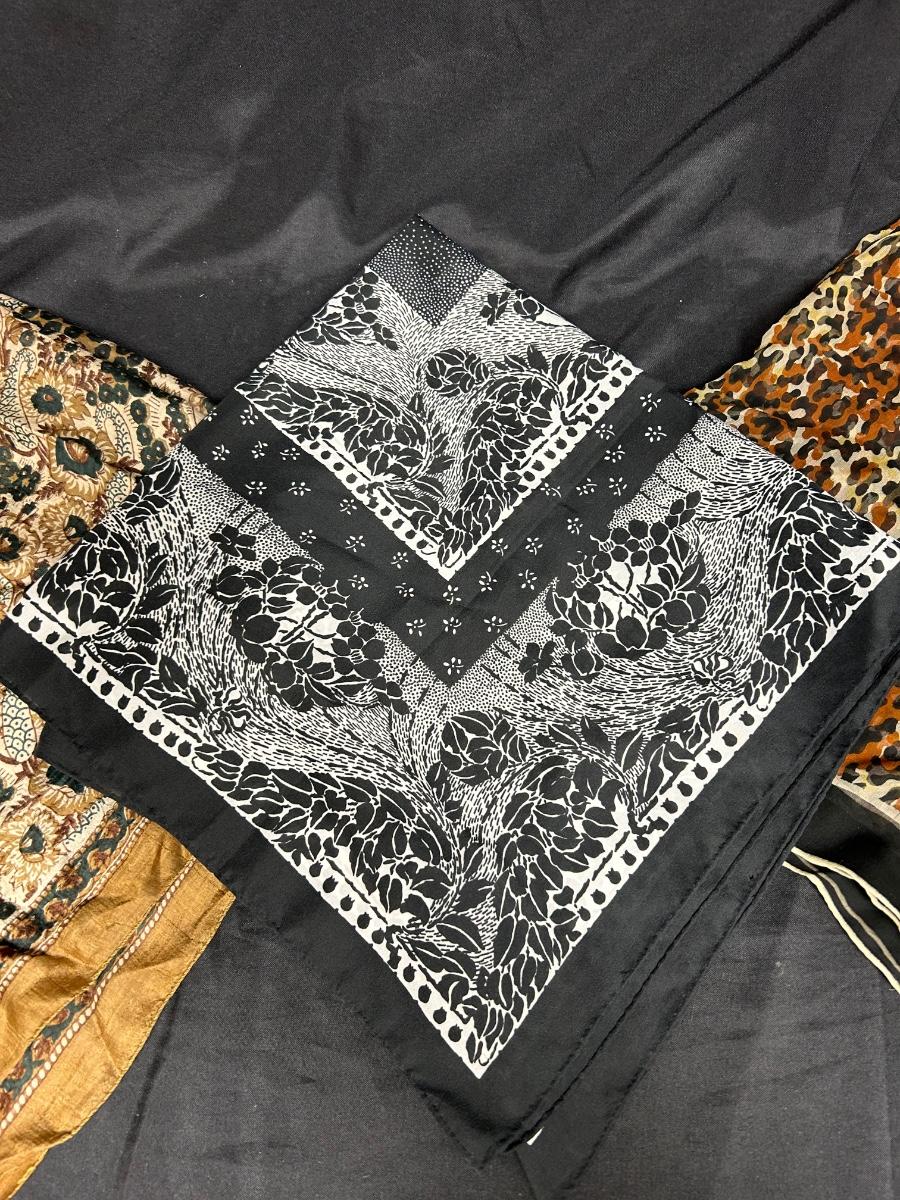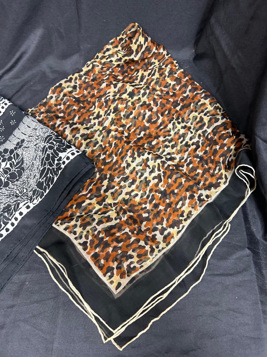 Lot of Three Black and Brown Tone Silk Polyester Scarves Head Neck Scarf. In good condition.