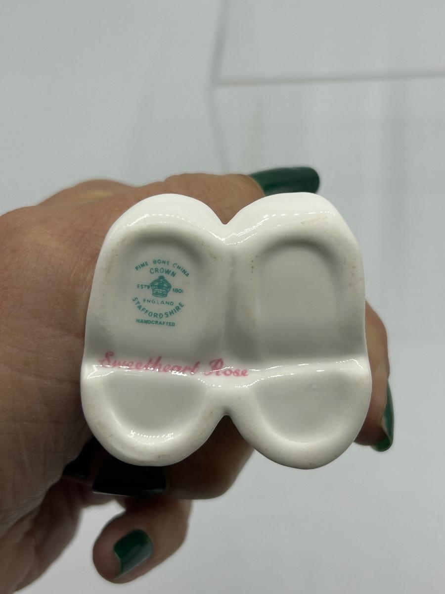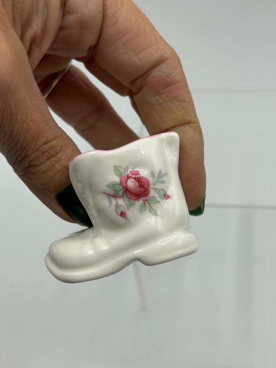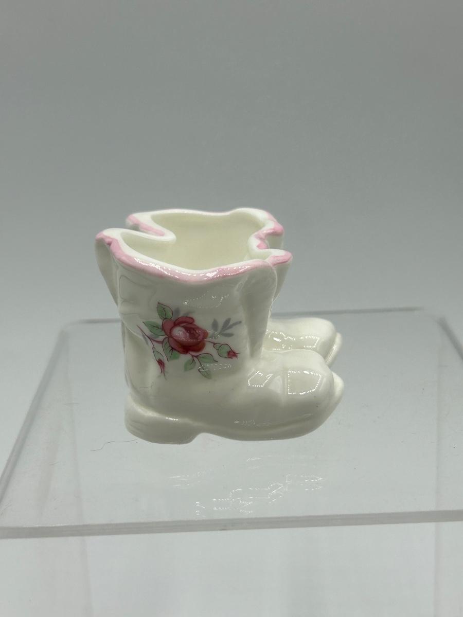 Vintage Pair of Boots Booties Crown Staffordshire Bone China Sweetheart Rose Figurine Shoes. In good condition. Under 2" size.