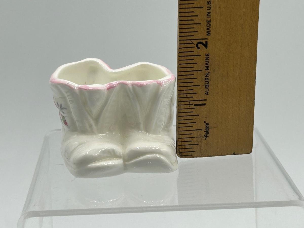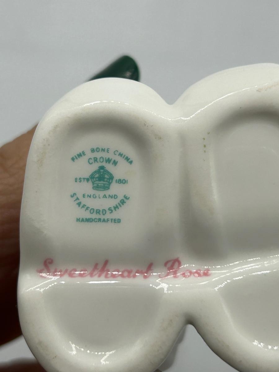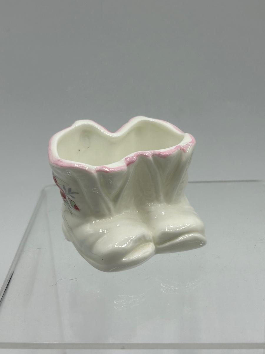 Vintage Pair of Boots Booties Crown Staffordshire Bone China Sweetheart Rose Figurine Shoes. In good condition. Under 2" size.