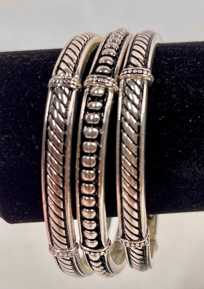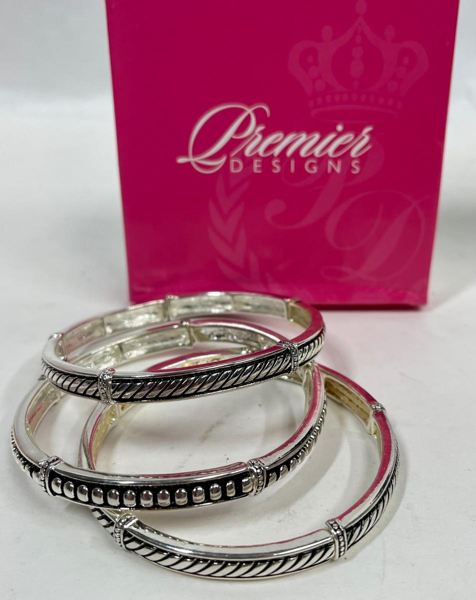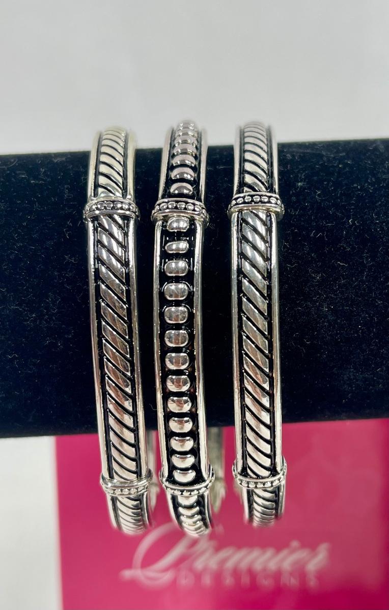 Premier Jewelry Silver-tone Bracelet Bangles 3 pc Set (Jewelry Lot #4)