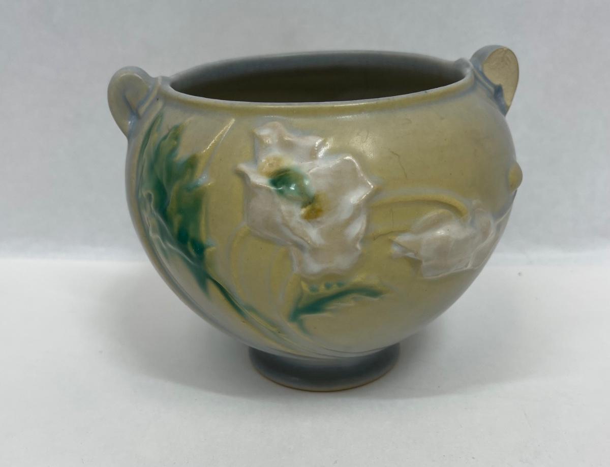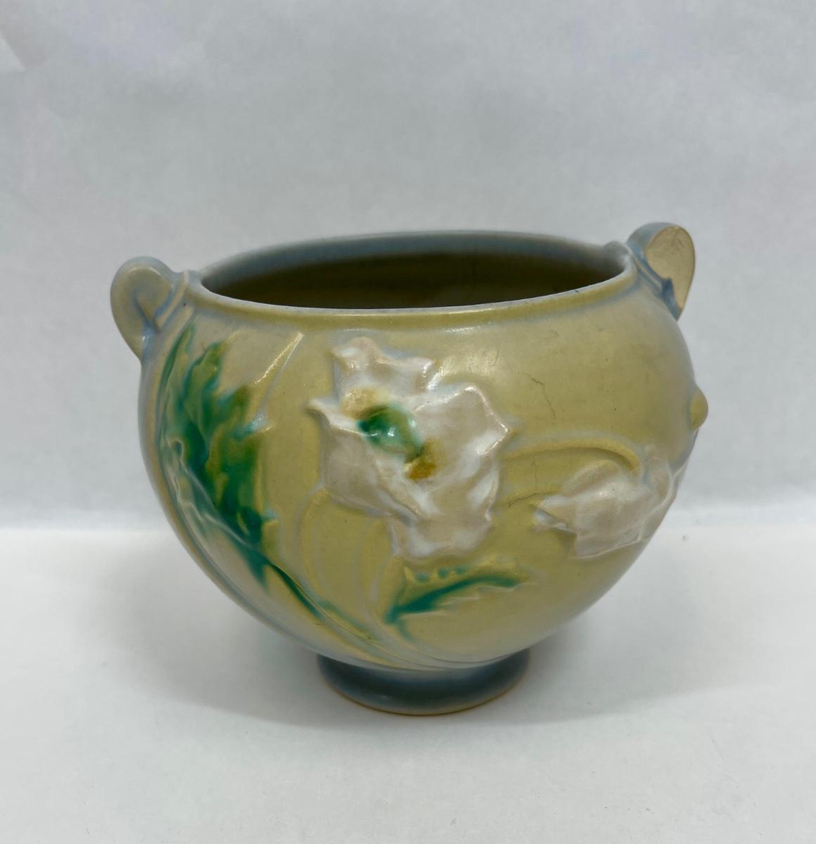 unmarked Roseville Art Pottery Small Poppy Jardiniere Vase