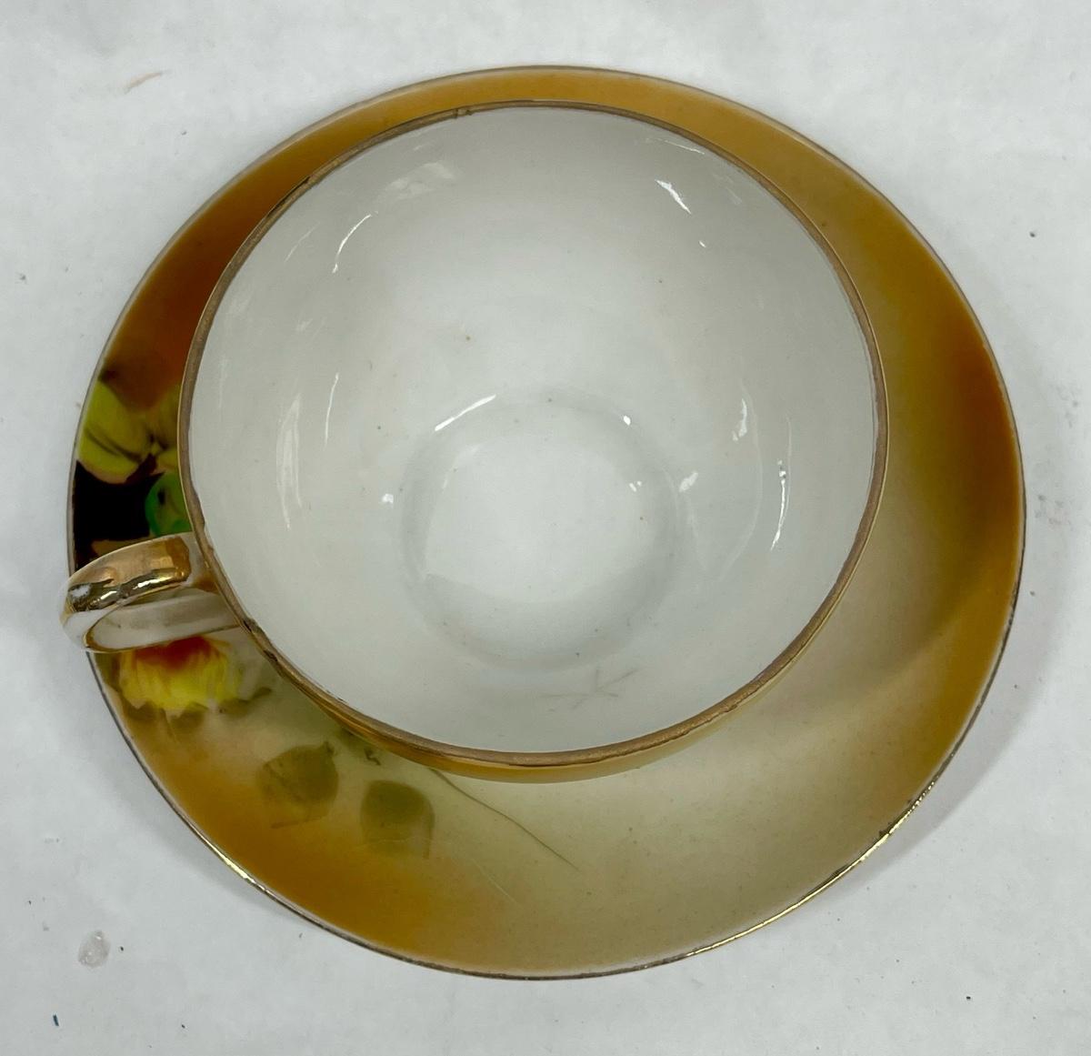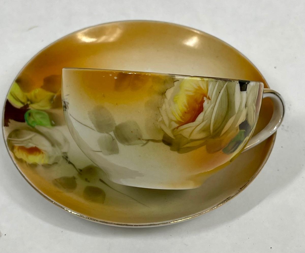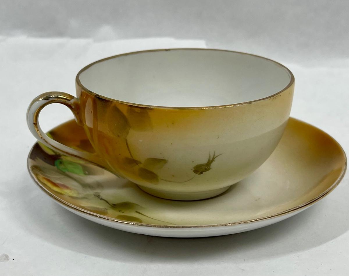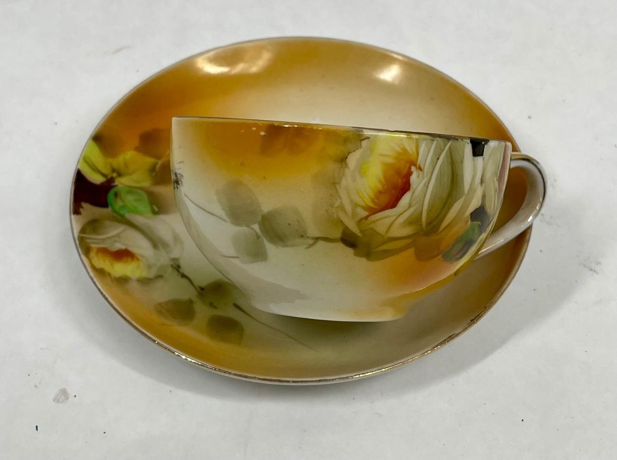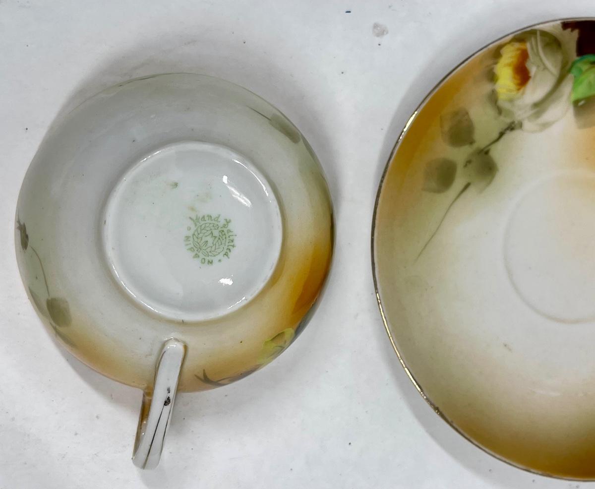 Antique Nippon Hand Painted Teacup & Saucer Set Floral